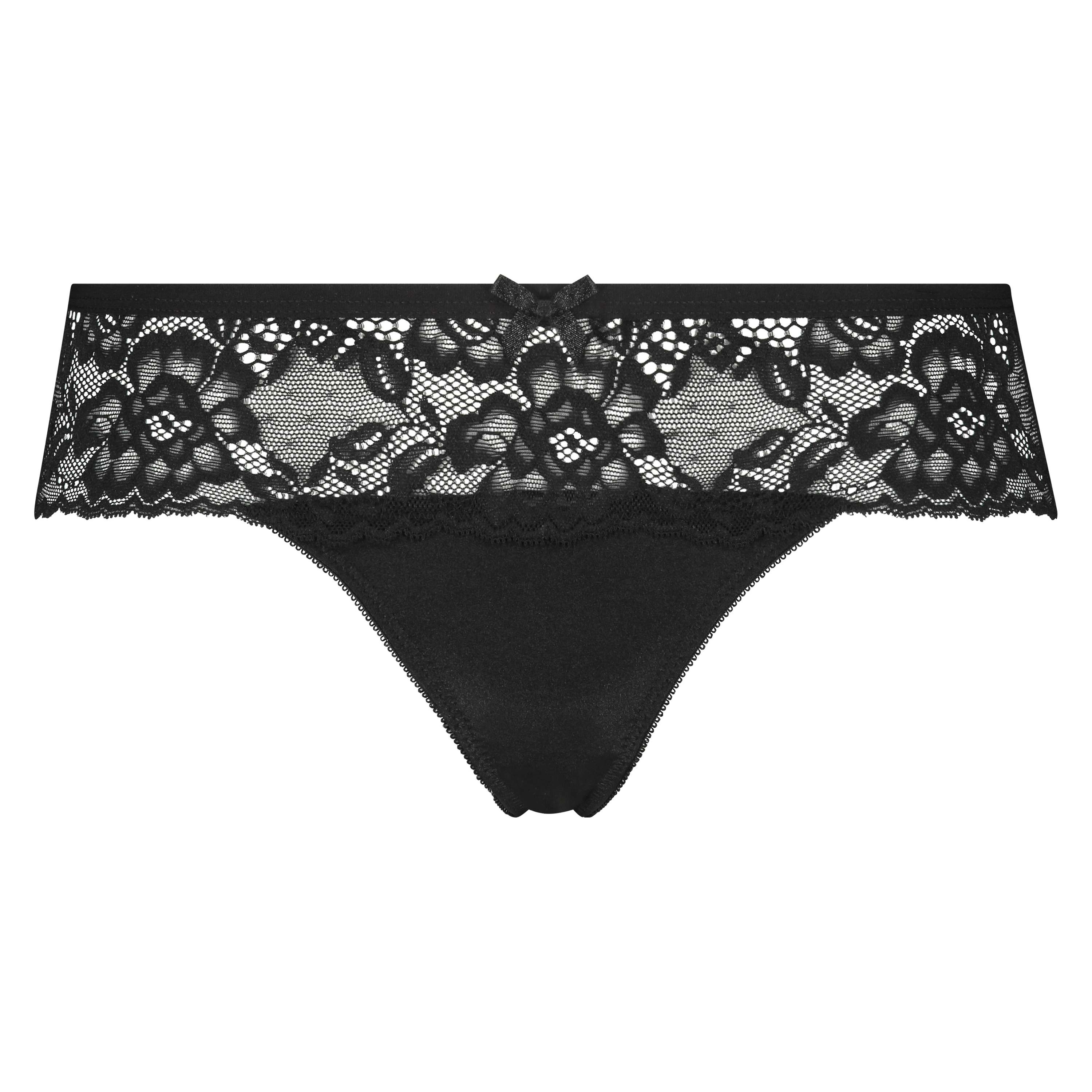 Denne hipster er fremstillet i mikro- og blondestof. Den har en lille sløjfe foran.