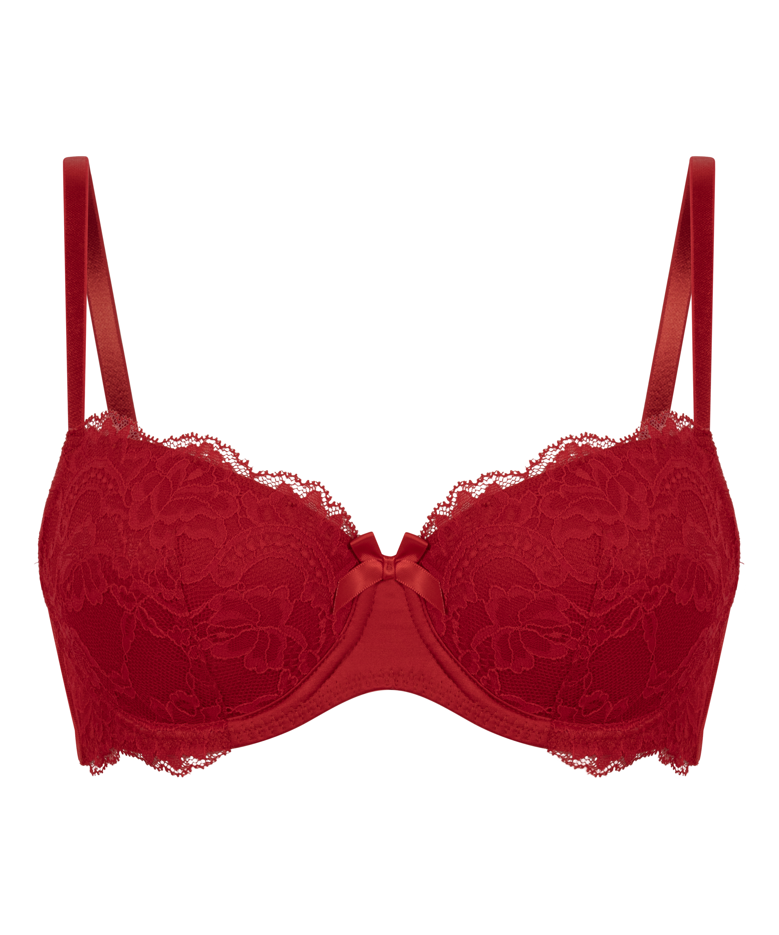 Dette er den perfekte bh til dig! Bh'en har forformede skåle med bøjle, og skulderstropperne kan justeres efter ønske. Bh'en er forsynet med blonder og har en sløjfe mellem skålene.