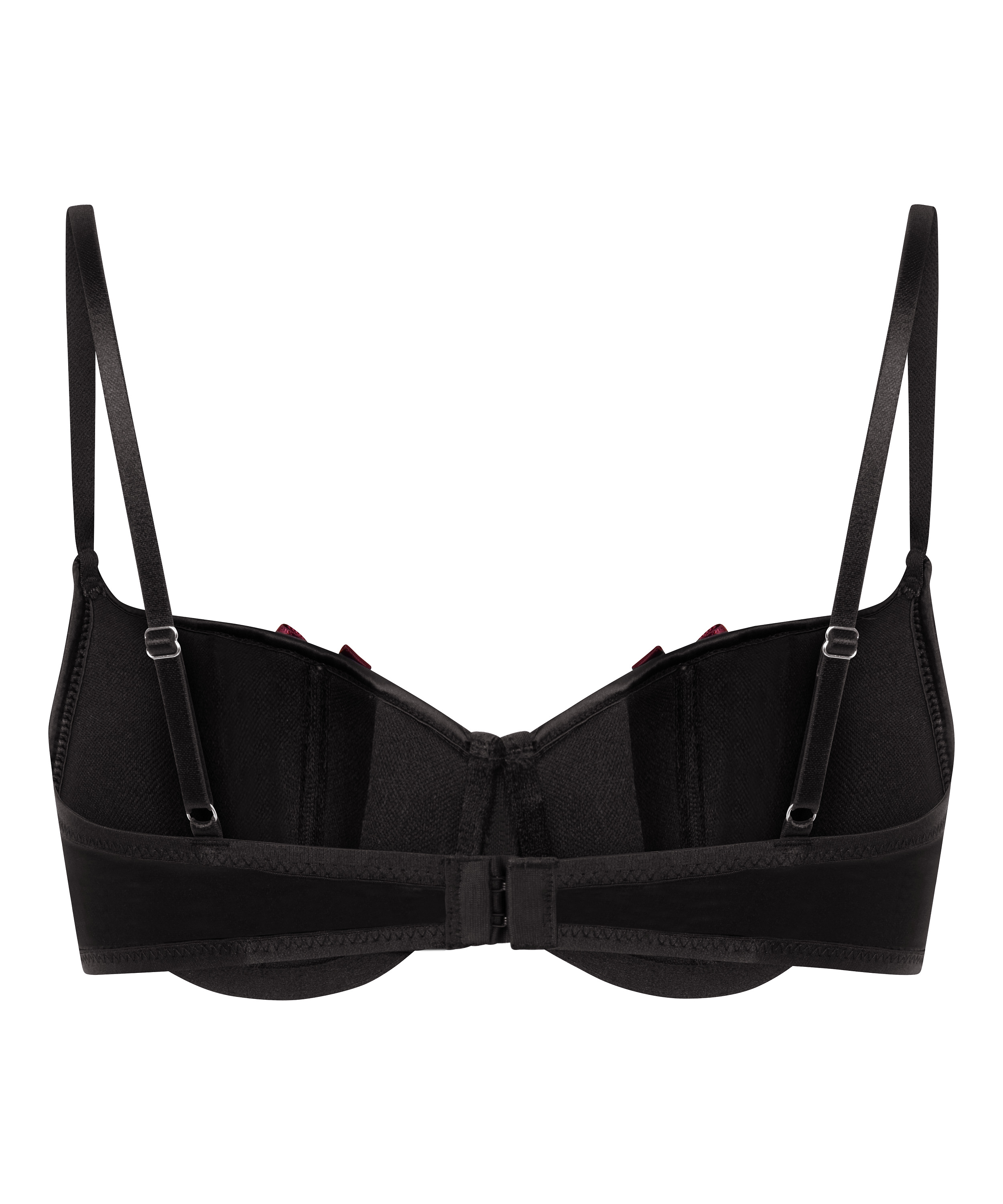 Nyd elegance med vores bh. Denne smukke bh har vatterede skåle med bøjle for blidt løft og støtte, mens blondeoverlæg tilføjer et strejf af romantik til toppen af hver skål. Den har en charmerende sløjfedetalje på hver skål samt et satin-look og en satinblød fornemmelse, og den er designet til at føles lige så godt, som den ser ud. Fuldend looket med den matchende underdel.