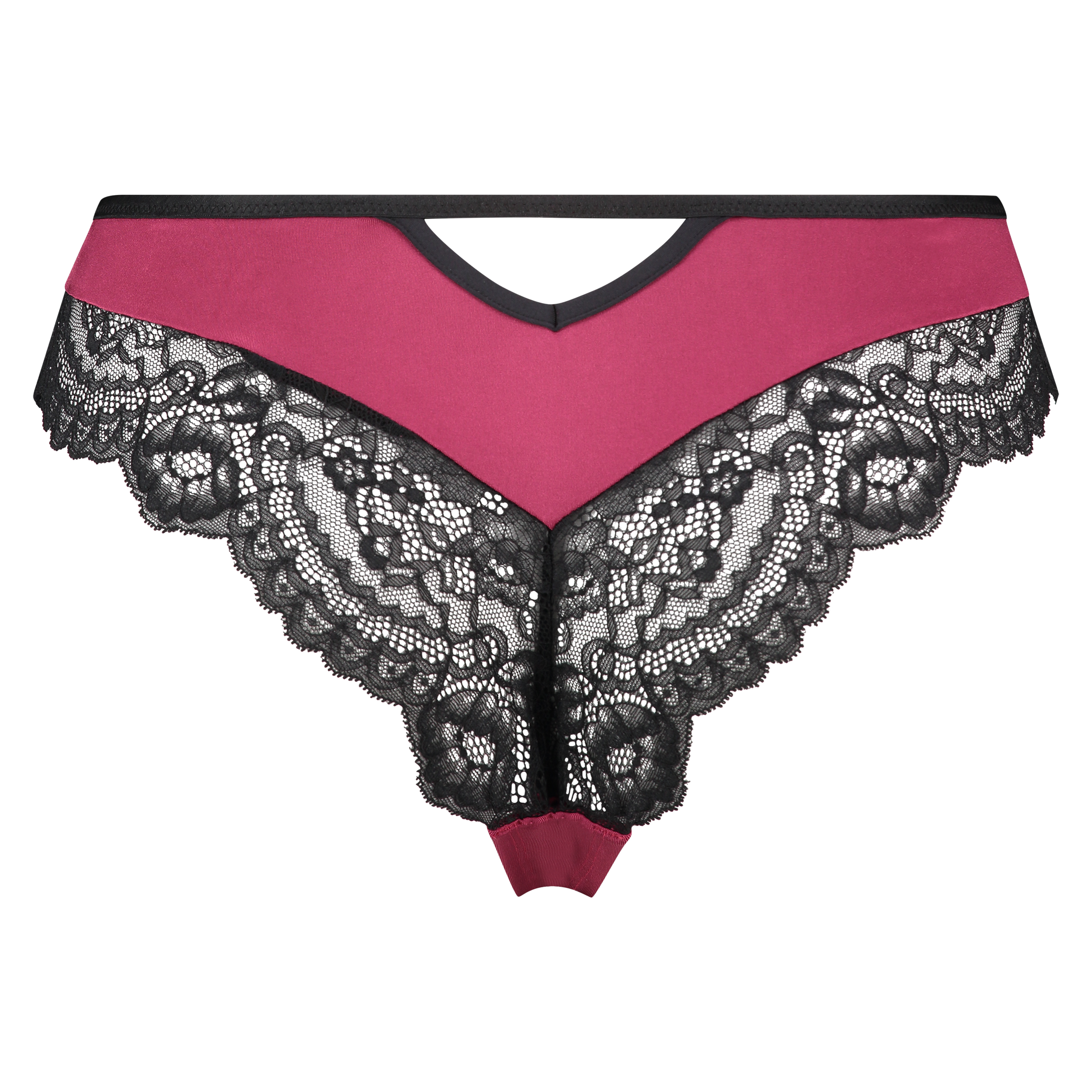 Denne brasilianske trusse er beklædt med smukke blonder. Den lille cut-out-detalje foran og bagpå gør trussen til noget helt særligt! Kombiner med den matchende bh og fuldend dit sæt. En artikel fra Ann Kathrin-kollektionen.