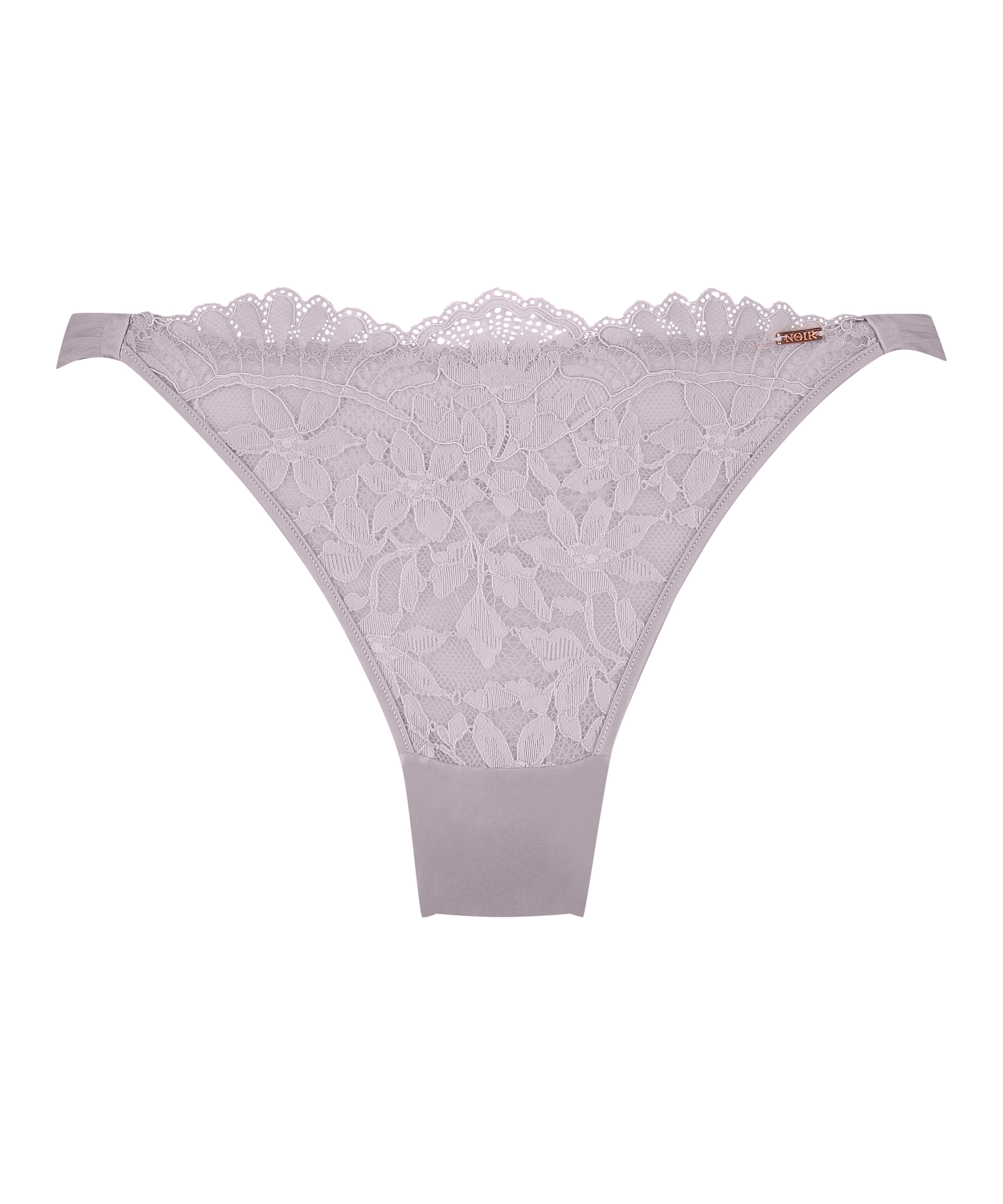 Fremhæv dine balder med denne sexede brasilianske trusse! Med halvtransparent blondestof over det hele og satinstof forneden! Og en lille sneak peak foran! Supersexet!