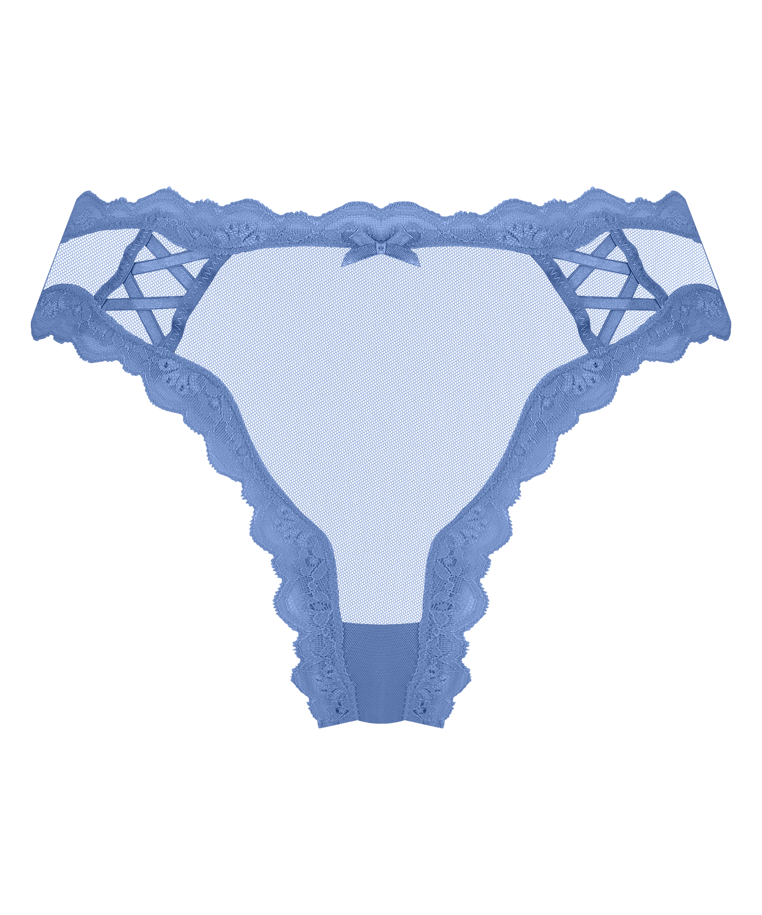 Tilføj et strejf af elegance til din lingerikollektion med vores Astra brasilianske trusse. Dette design har blondekanter, der giver et romantisk look, mens mesh-stoffet skaber en moderne mood. Kombinér den med din yndlings-bh for at fuldende looket!