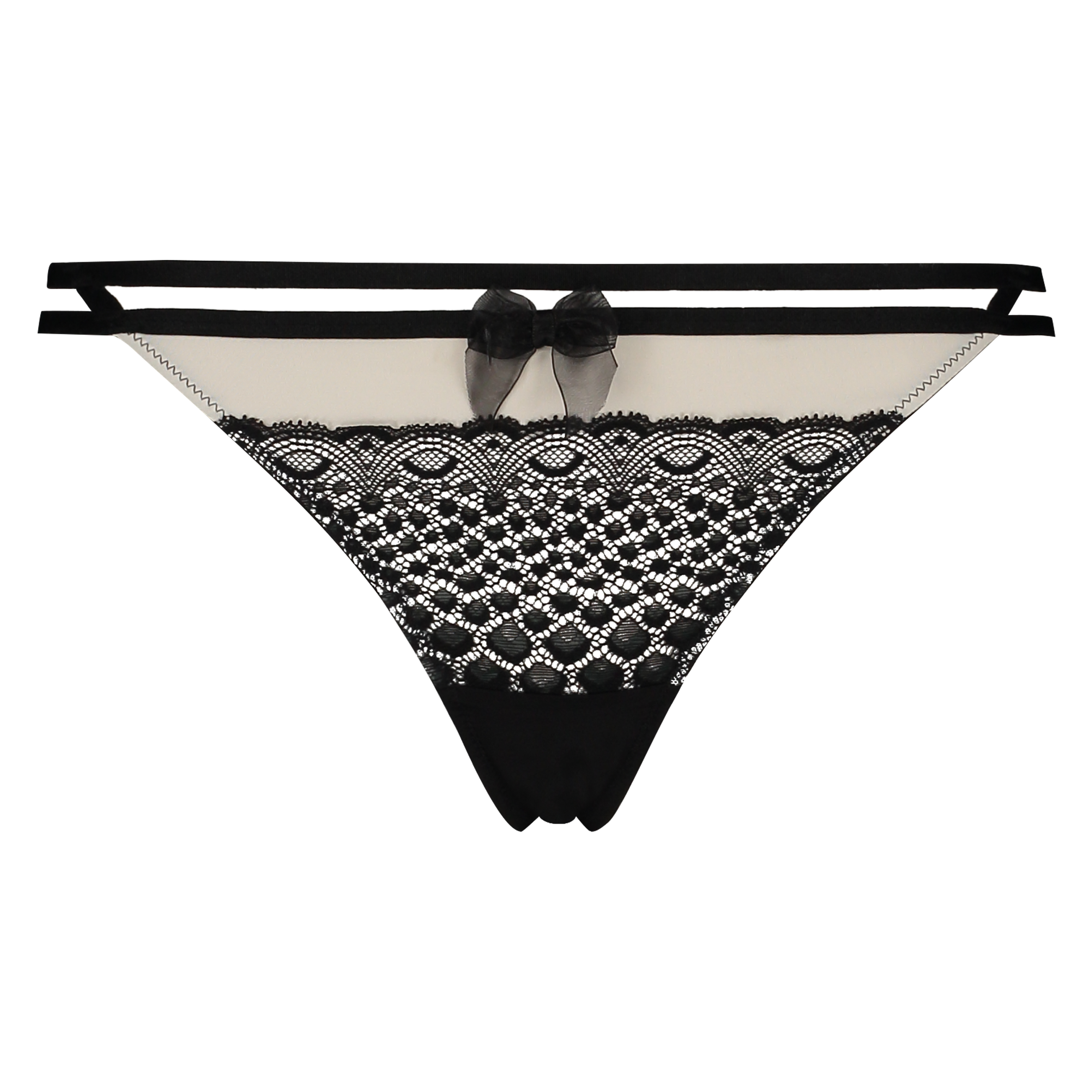 Fuldend dit sæt med denne sexede g-streng. Den er beklædt med blonder og har sexede stropdetaljer. G-strengen har en lille sløjfe foran. Kombiner med den matchende bh og fuldend dit sæt!