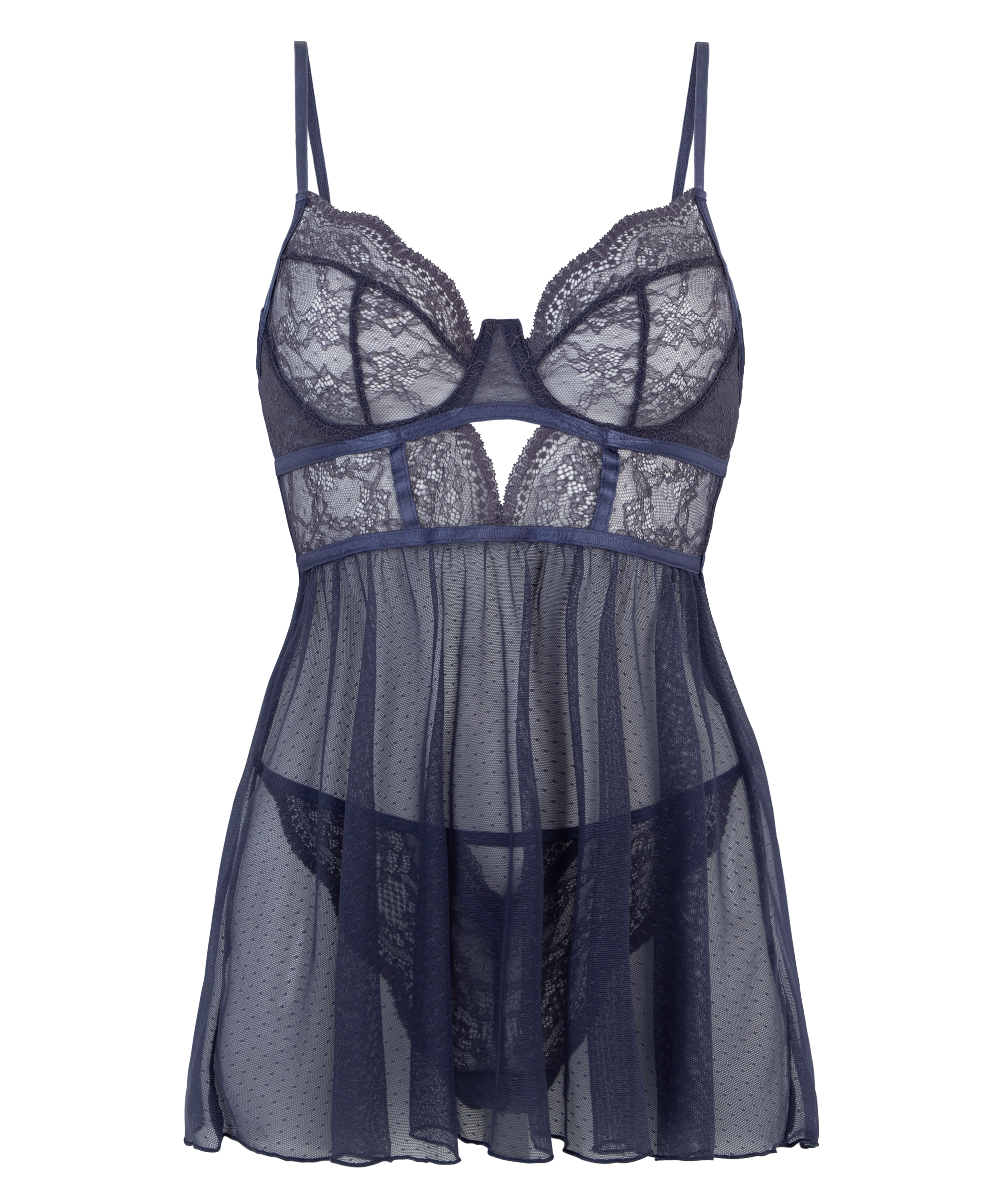 Føl dig sexet i denne pragtfulde babydoll! Med et romantisk look med blonder over det hele og støtter både foran og bagpå samt skåle med bøjle. Vi skal ikke glemme de matchende brasilianske trusser i sættet!