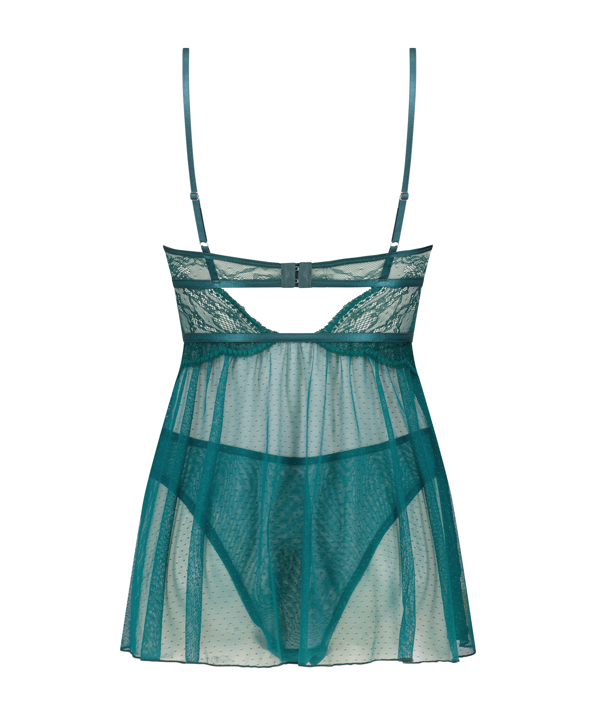 Føl dig sexet i denne pragtfulde babydoll! Med et romantisk look med blonder over det hele og støtter både foran og bagpå samt skåle med bøjle. Vi skal ikke glemme de matchende brasilianske trusser i sættet!