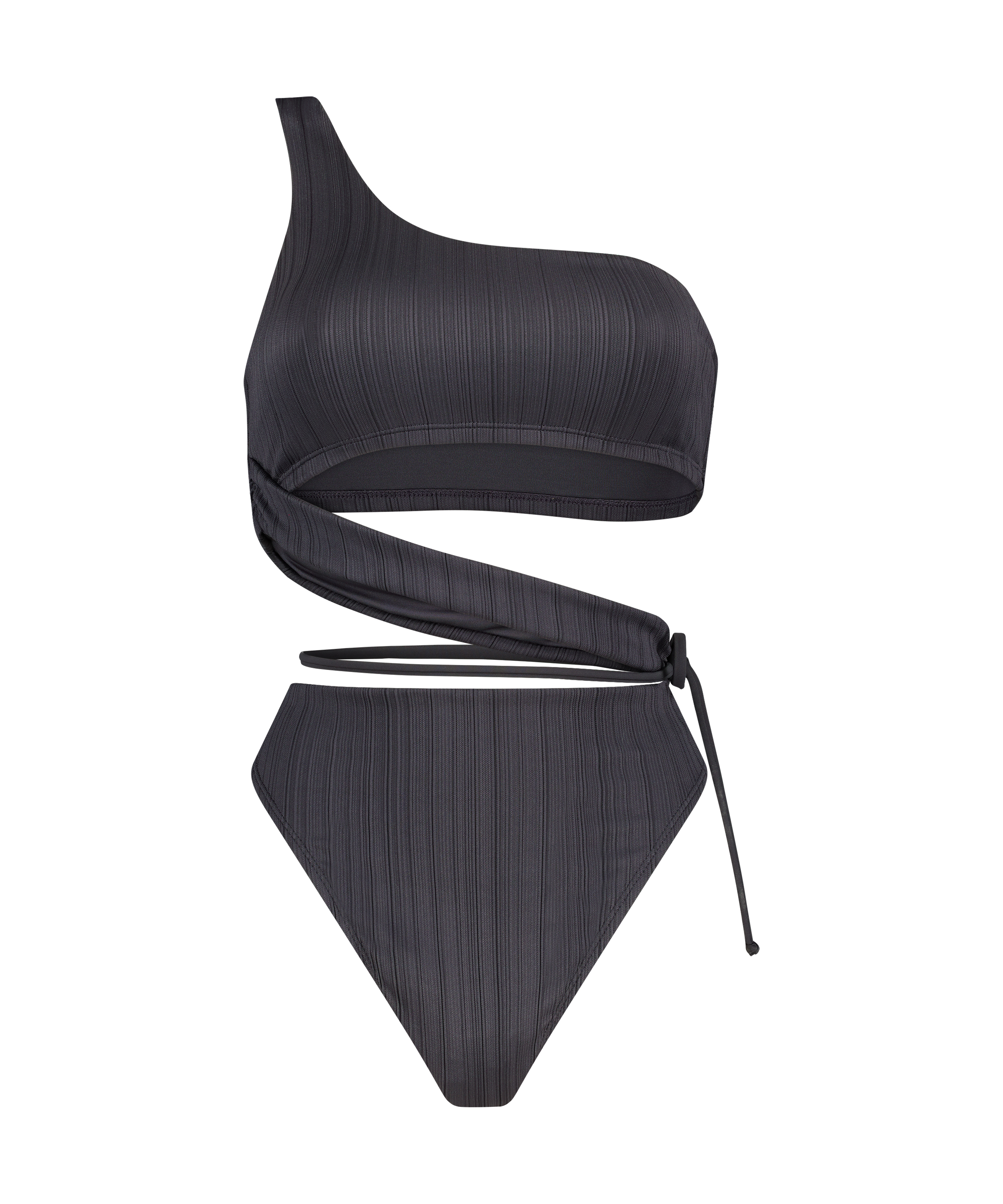 Vis dig frem på stranden med denne super specielle badedragt! Med masser af udskårne detaljer for at skabe en omsluttende effekt omkring taljen. One-shoulder look og tilføjede snøredetaljer. Den er selvfølgelig dobbeltforet. Sæt den sammen med en kimono for at fuldende looket!