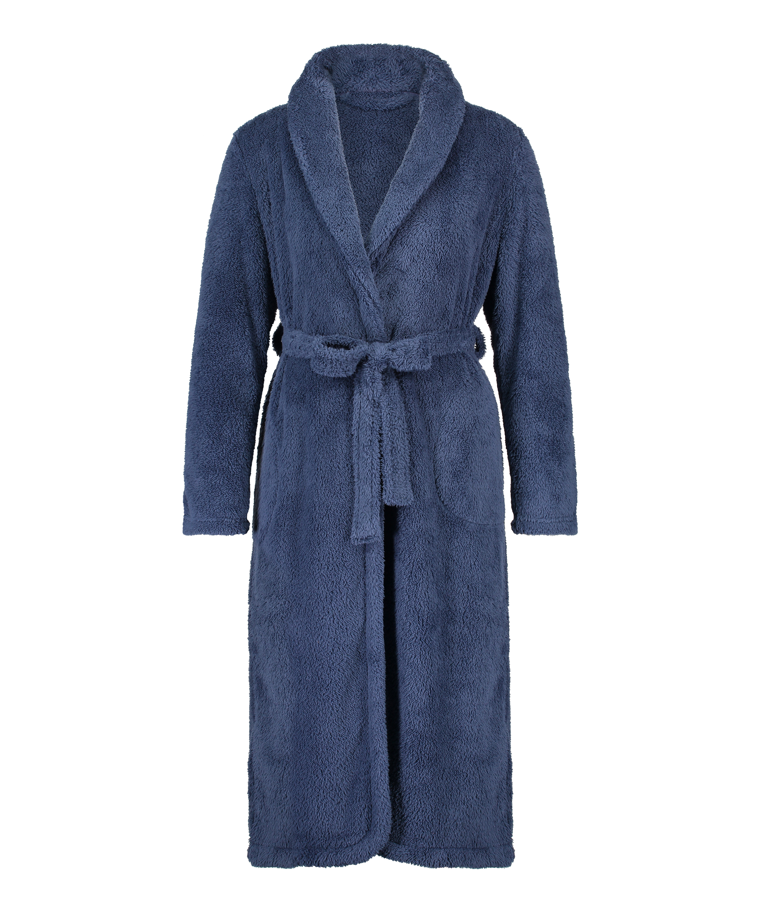 Dejlig blød badekåbe! Denne lange model går til under knæet. Med slå-om-lukning og stiklommer.