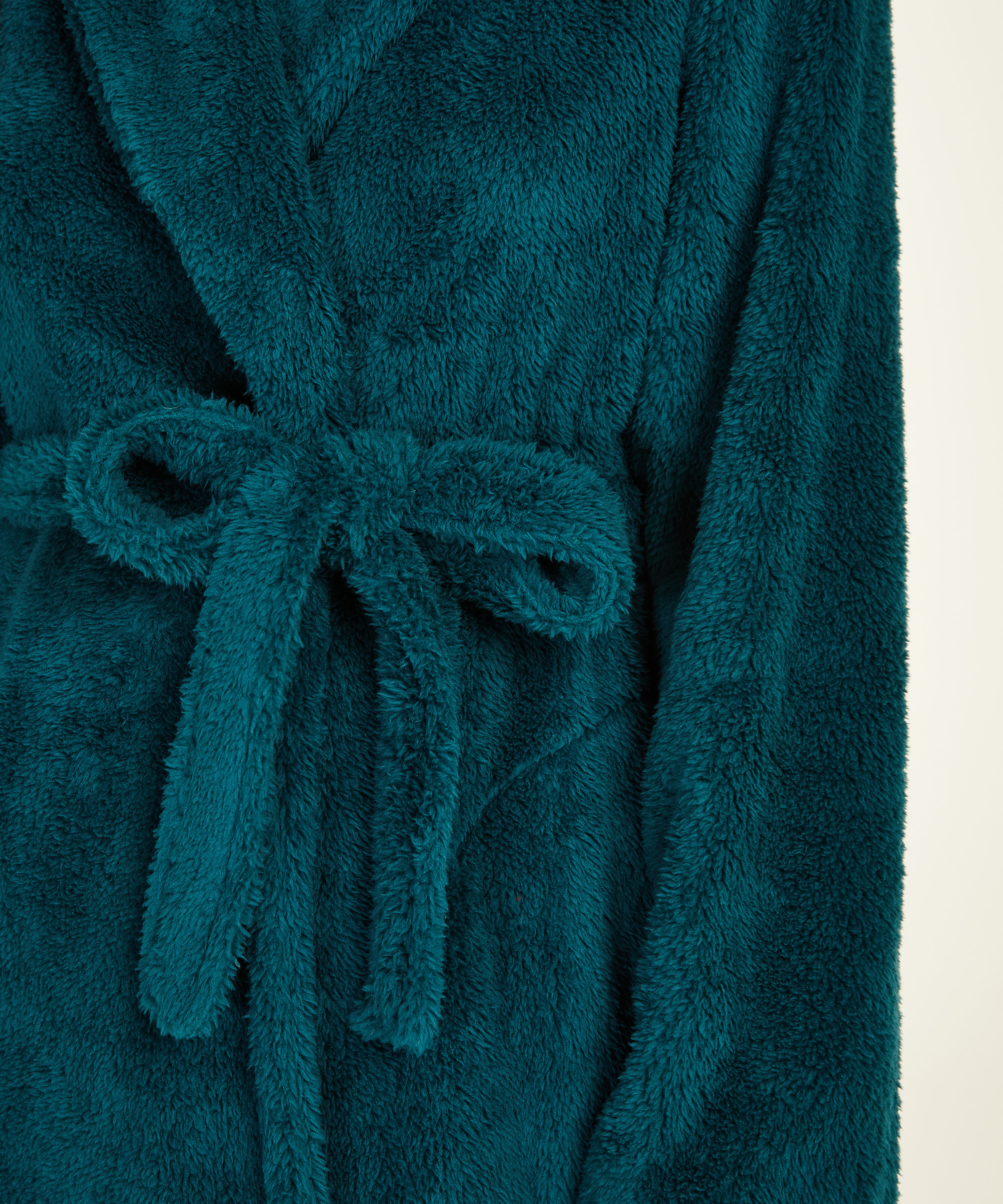 Dejlig blød badekåbe! Denne lange model går til under knæet. Med slå-om-lukning og stiklommer.
