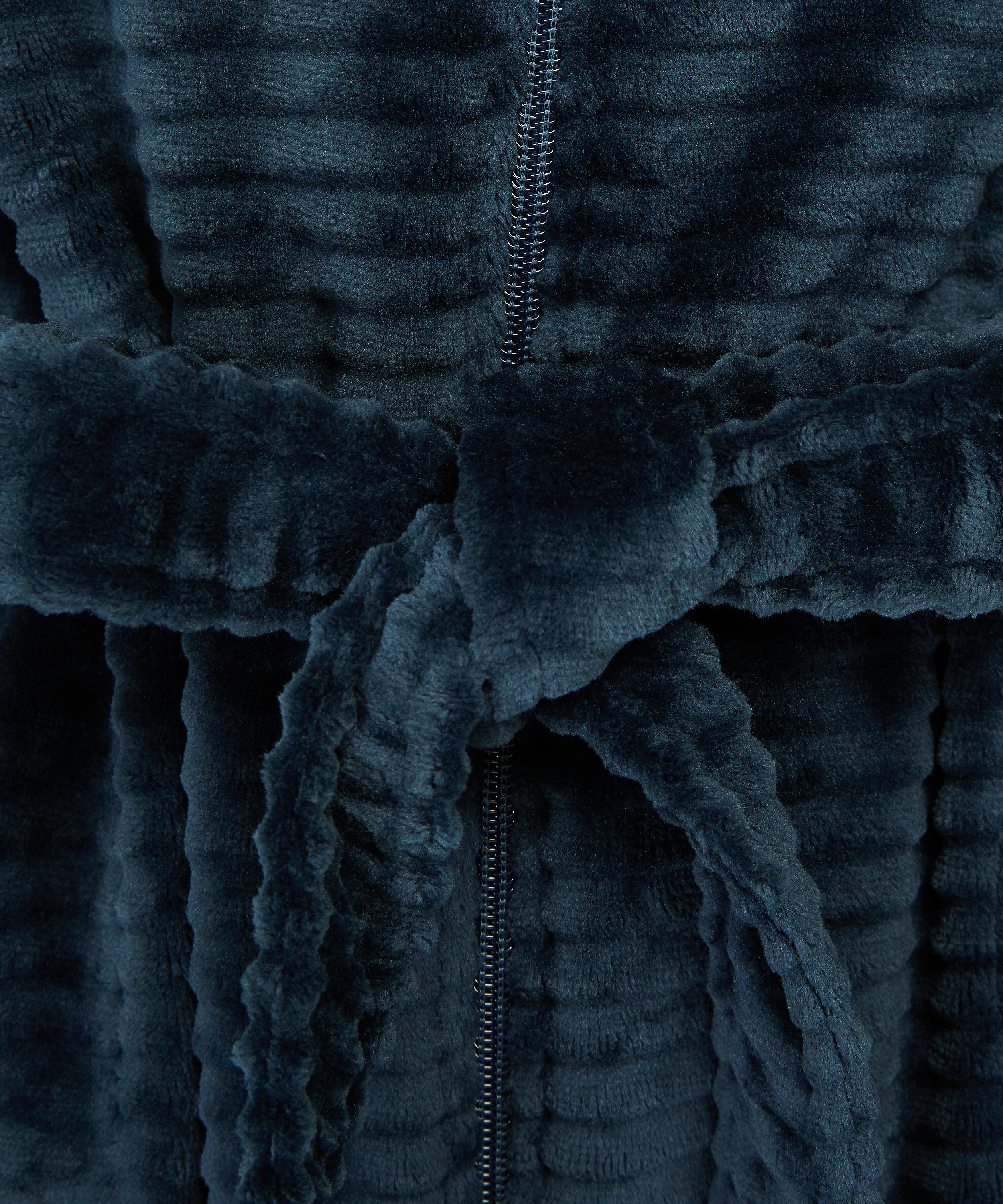 Føl dig godt og behageligt tilpas i denne badekåbe! Badekåben er lavet i ribstrikket fleece og lukkes med en lynlås. Sæt den sammen med et matchende sæt nattøj for at fuldende looket!