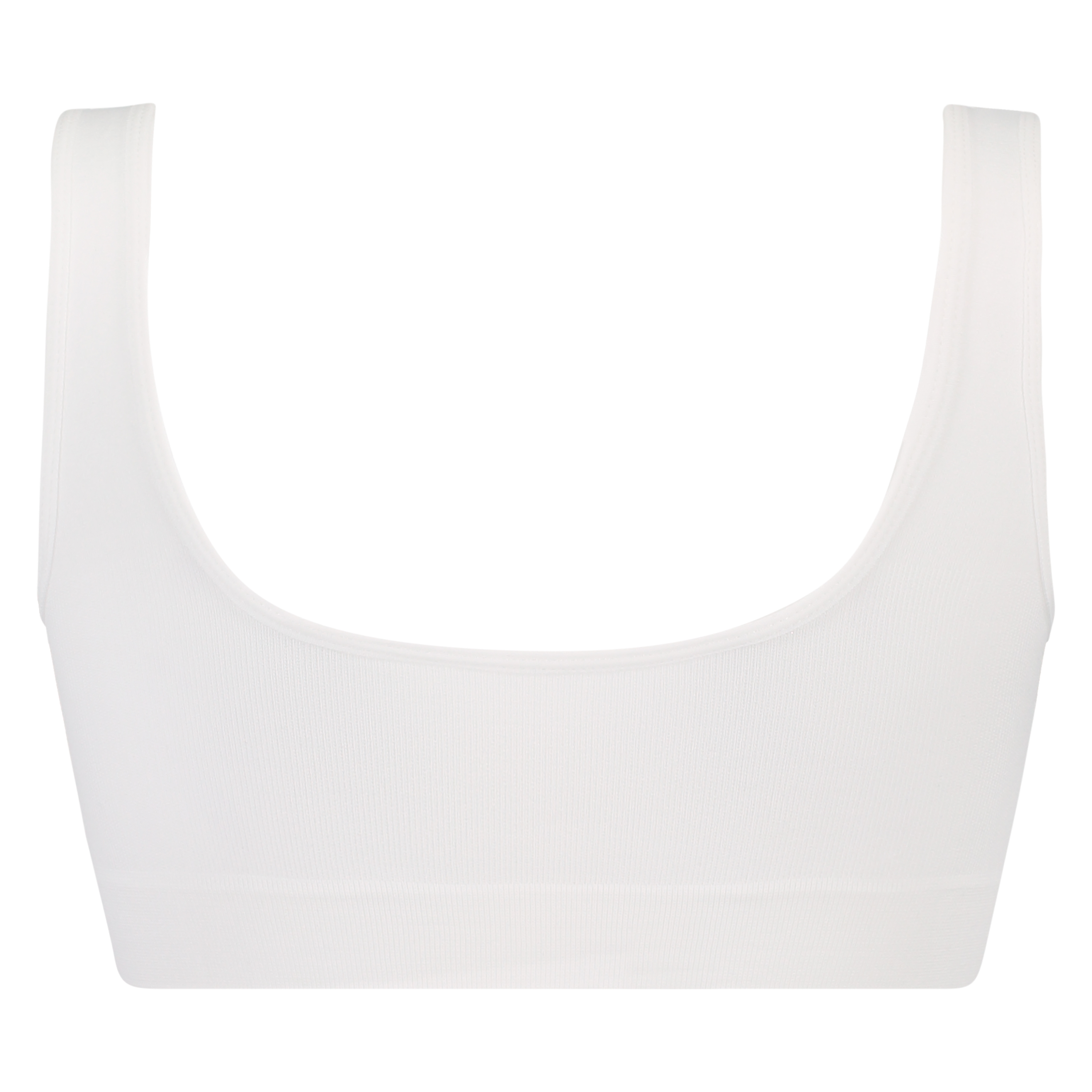 Sømløs og uden bøjle. Elastisk kant nederst, som sikrer at toppen bliver på plads. Microfiber materialet gør den komfortabel at have på.