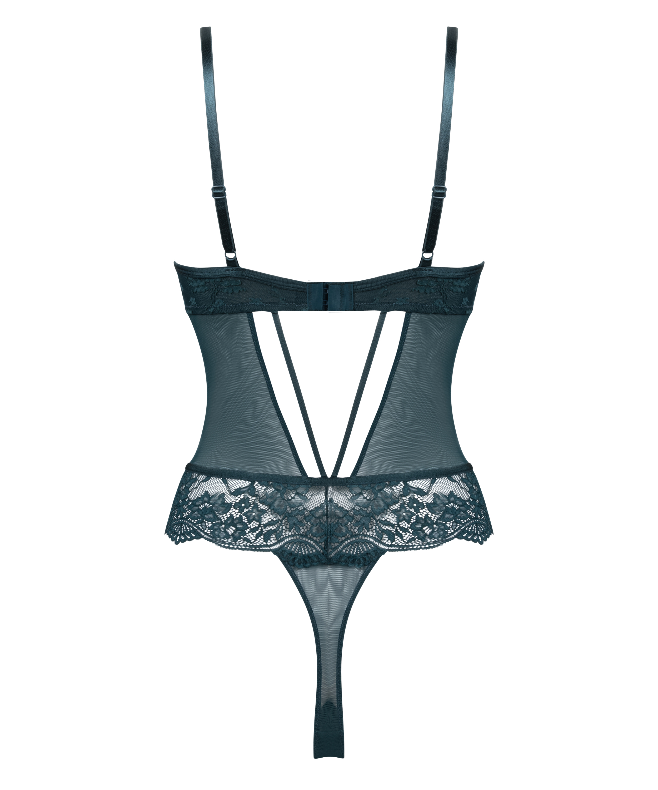 Skru op for forførelsen med vores body, der udstråler elegance og selvtillid. Med en forførende blanding af delikate blonder og gennemsigtigt mesh fremhæver denne body smukt din silhuet. Den åbne ryg giver et dristigt, sofistikeret touch, perfekt til at lave et statement.