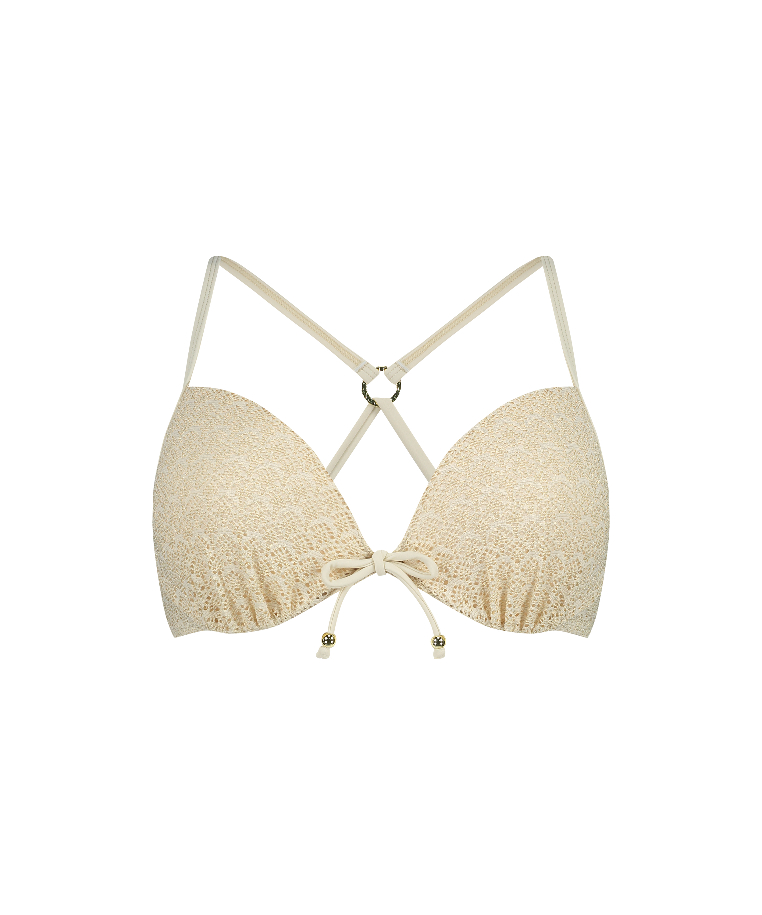 Bikinitoppen har push up-effekt. Kombiner dem med flot tilbehør som en hat, så er du klar til din strandferie.
