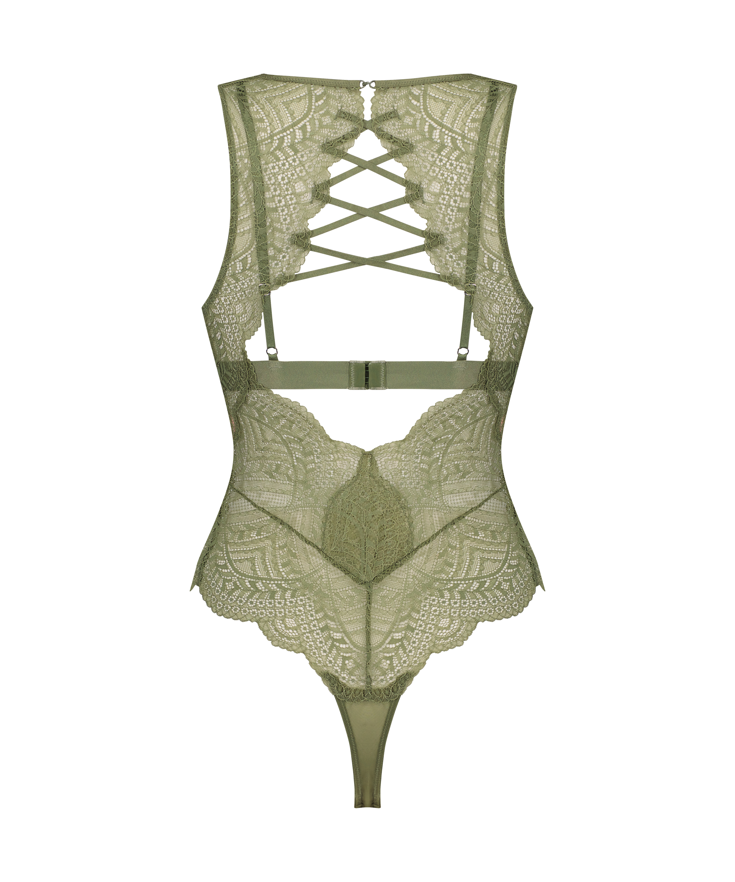 Leder du efter en sexet body? Den her er noget for dig. Med et semi-transparent look og masser af blonder. Med høj halsudskæring og udskårne detaljer dekoreret med snore. Det vil du ikke gå glip af!
