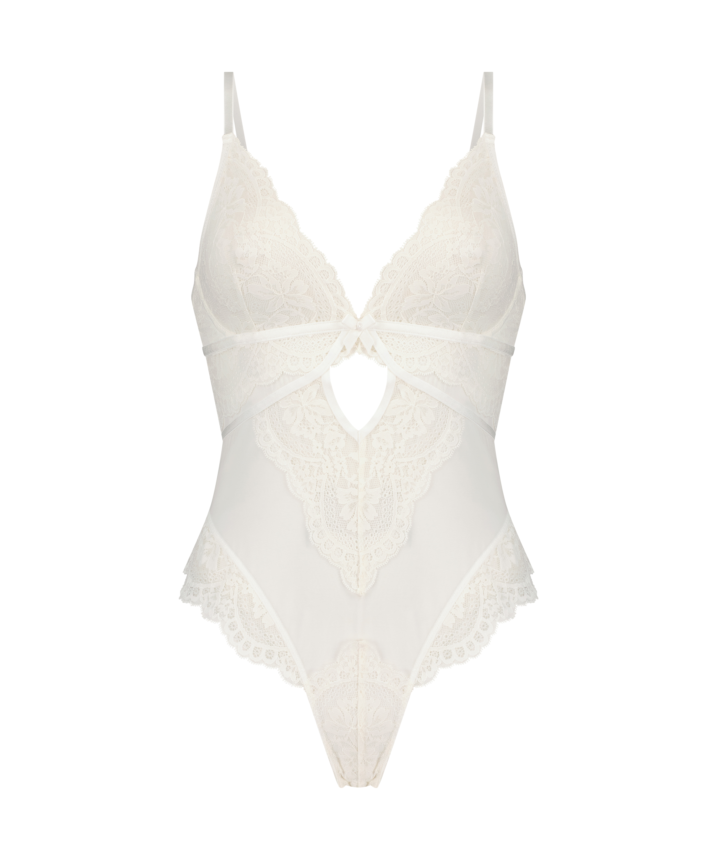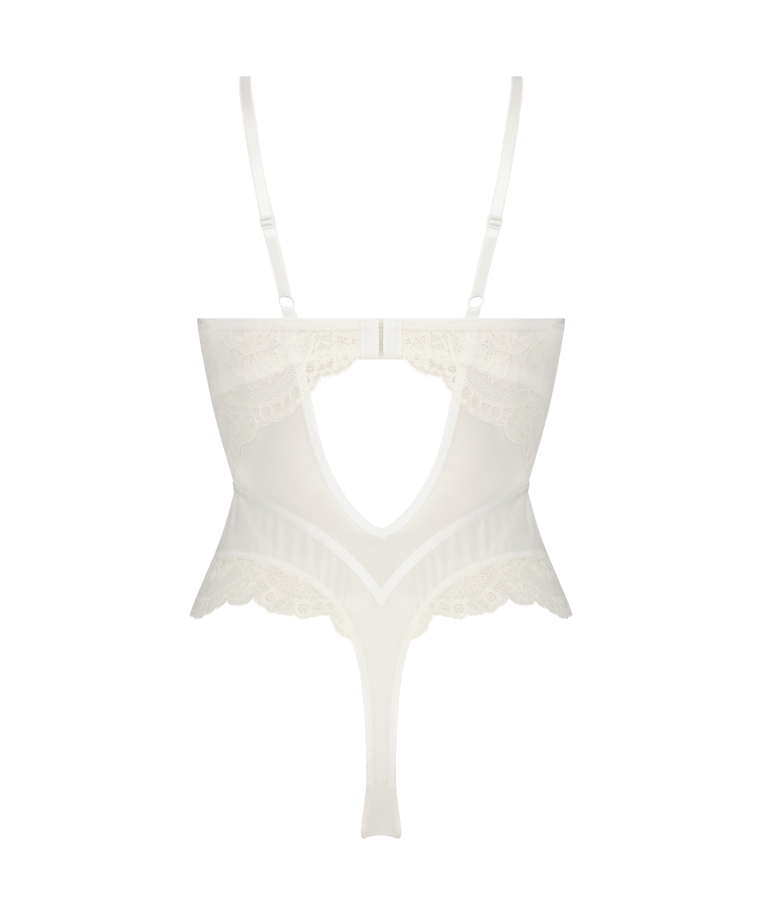 Se fabelagtig ud i denne body! Den indeholder blonder og mesh og har en sød sløjfe foran. Endvidere er skulderstropperne justerbare, og bodyen er halvgennemsigtig.