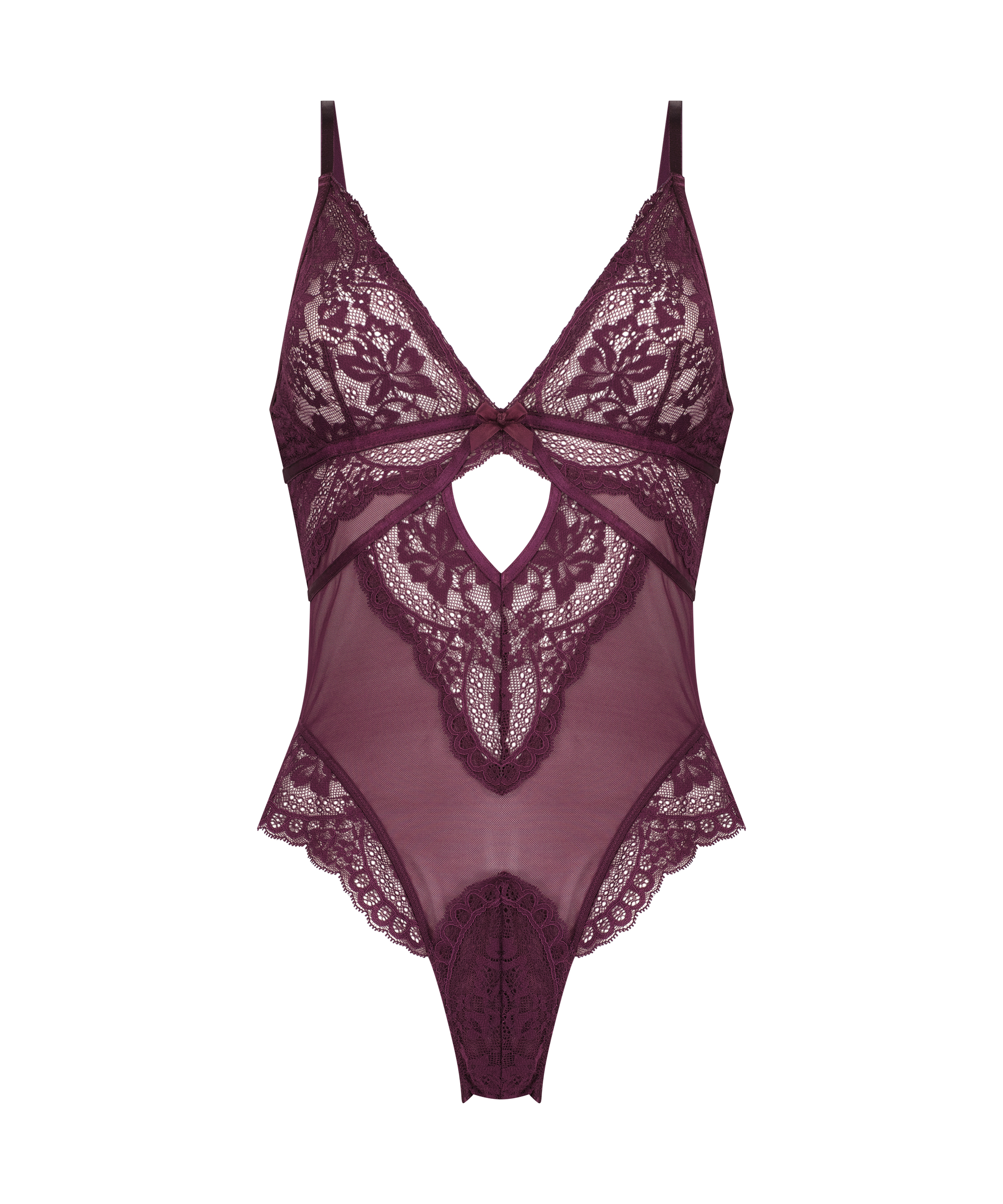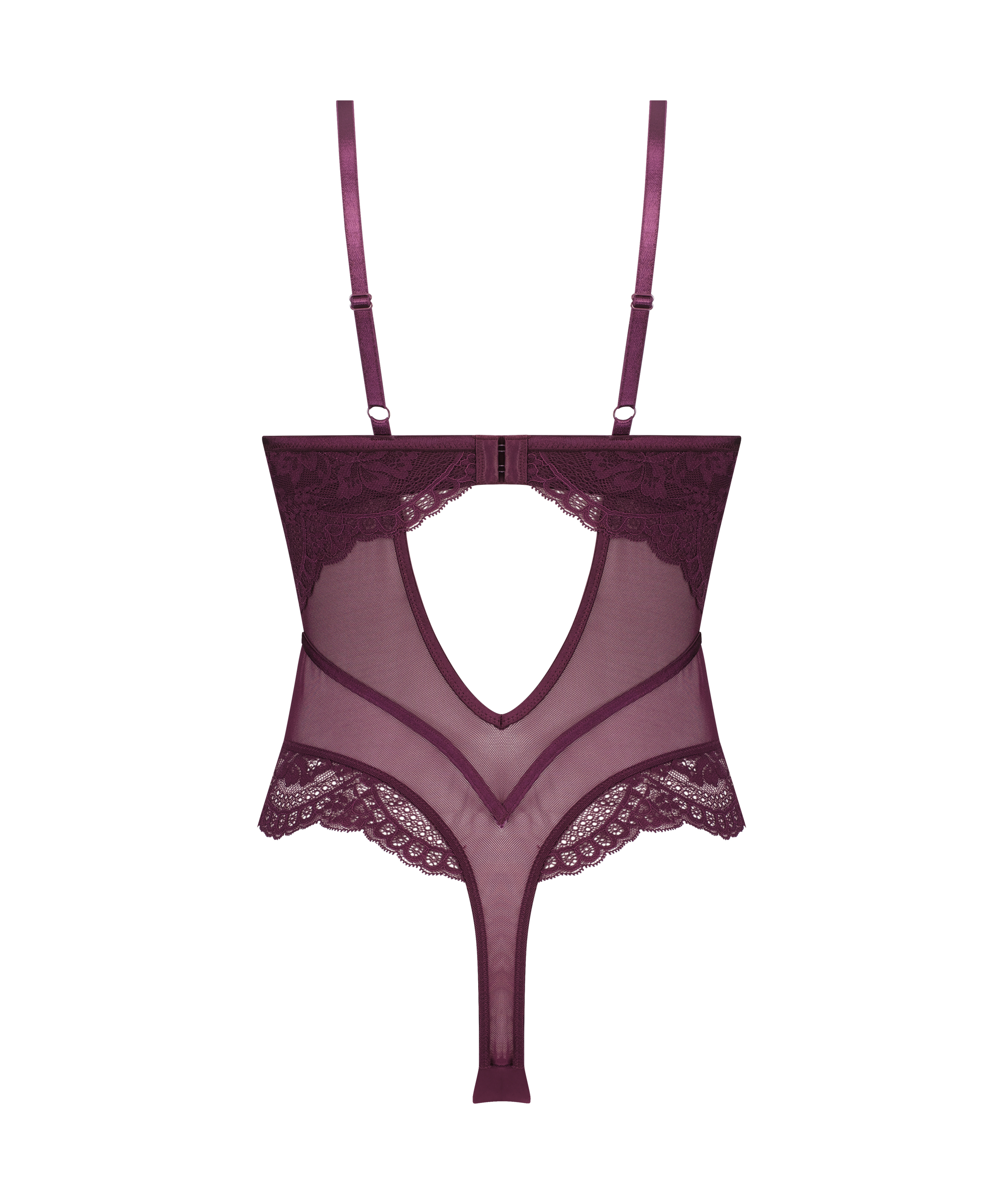 Se fabelagtig ud i denne body! Den indeholder blonder og mesh og har en sød sløjfe foran. Endvidere er skulderstropperne justerbare, og bodyen er halvgennemsigtig.