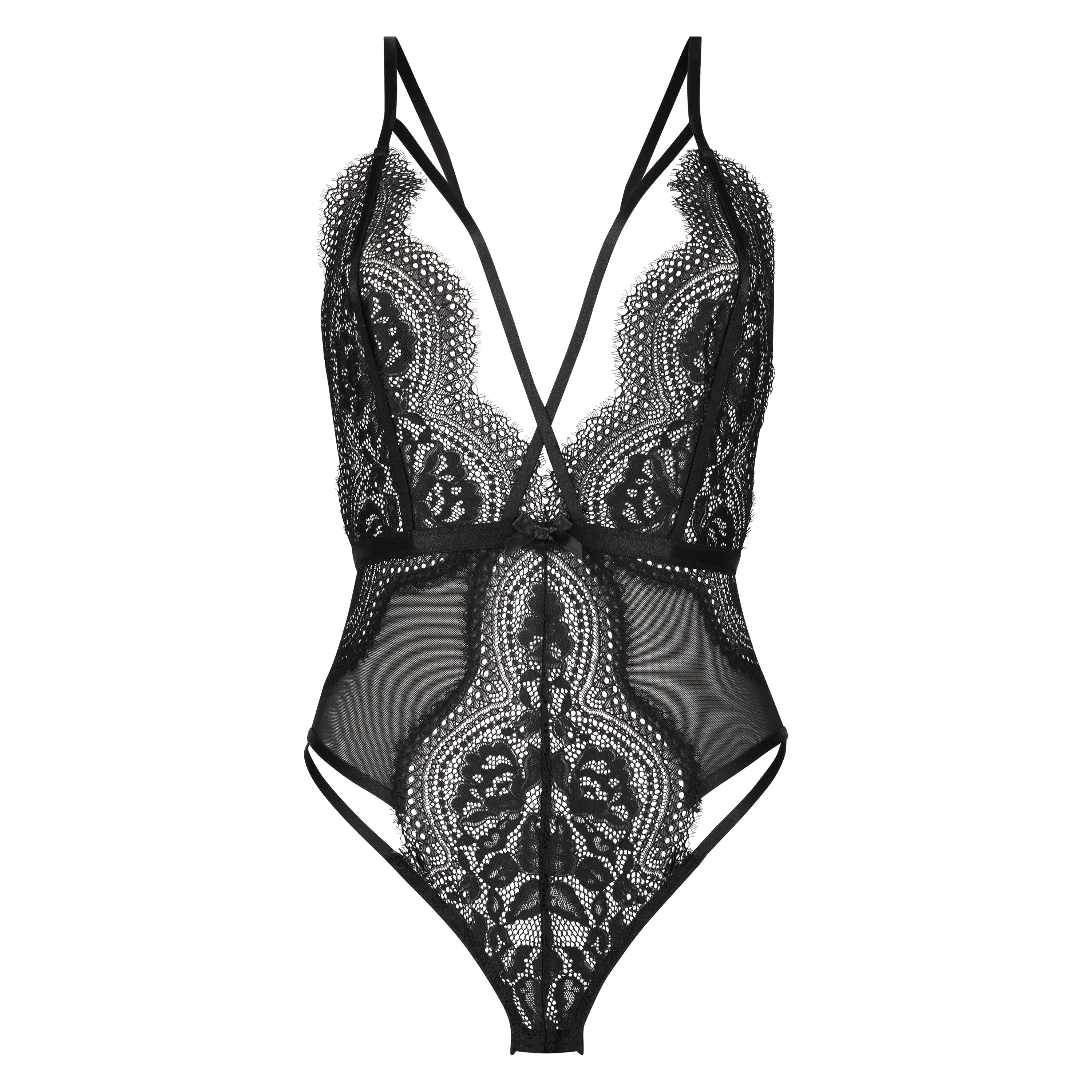 Denne g-streng er forsynet med et mix af mesh og blonder, derfor supersexet! De strappy og sløjfen runder bodyen flot af!