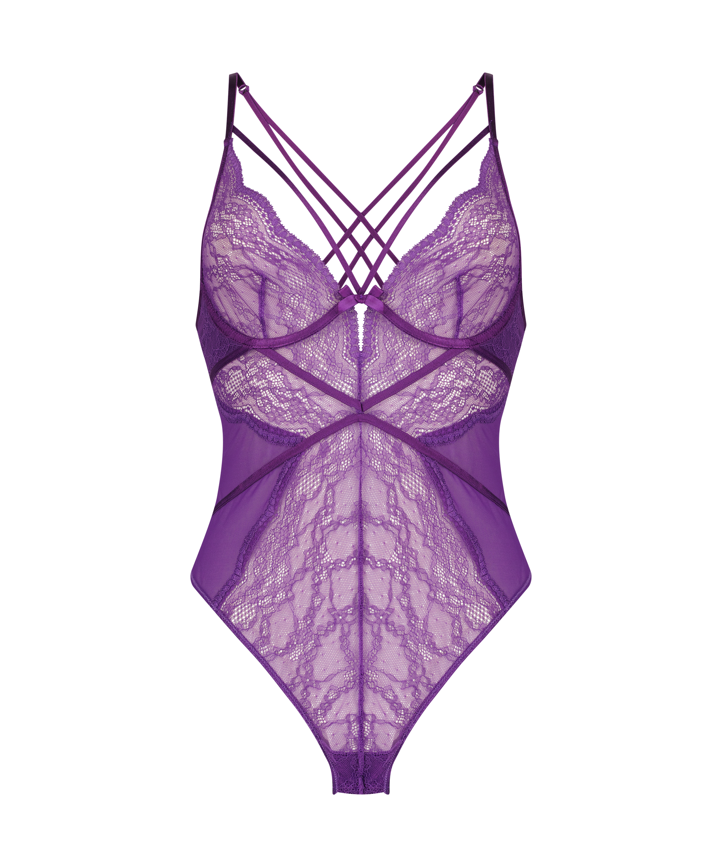 Strål i denne pragtfulde body! Fordi bodyen næsten helt er lavet af blonder, bliver dine kurver særlig smukke! Match med en smuk kimono og få et komplet look.