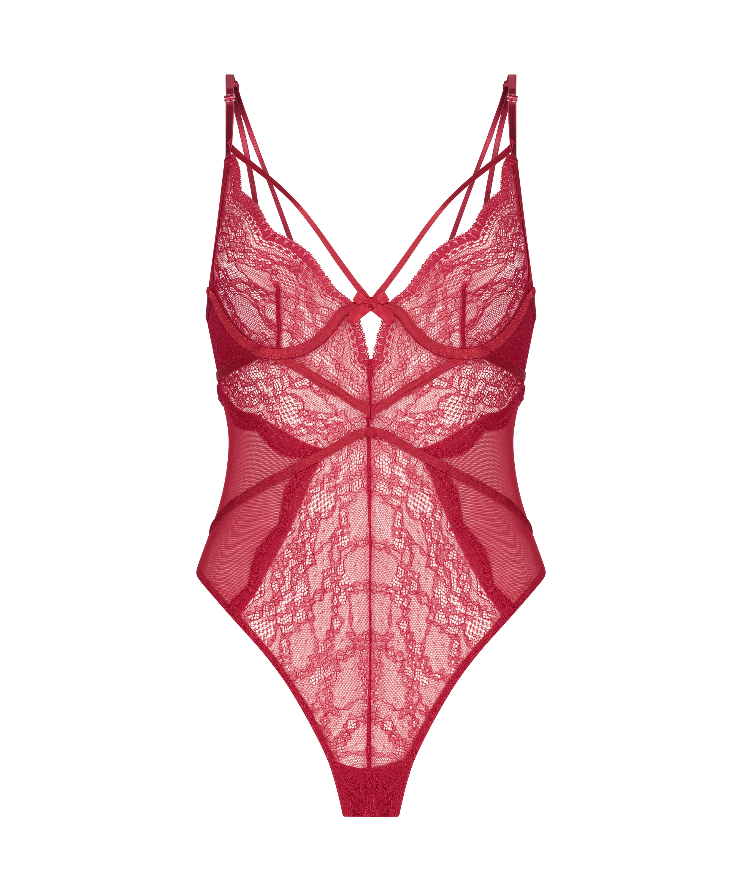 Strål i denne pragtfulde body! Fordi bodyen næsten helt er lavet af blonder, bliver dine kurver særlig smukke! Match med en smuk kimono og få et komplet look.