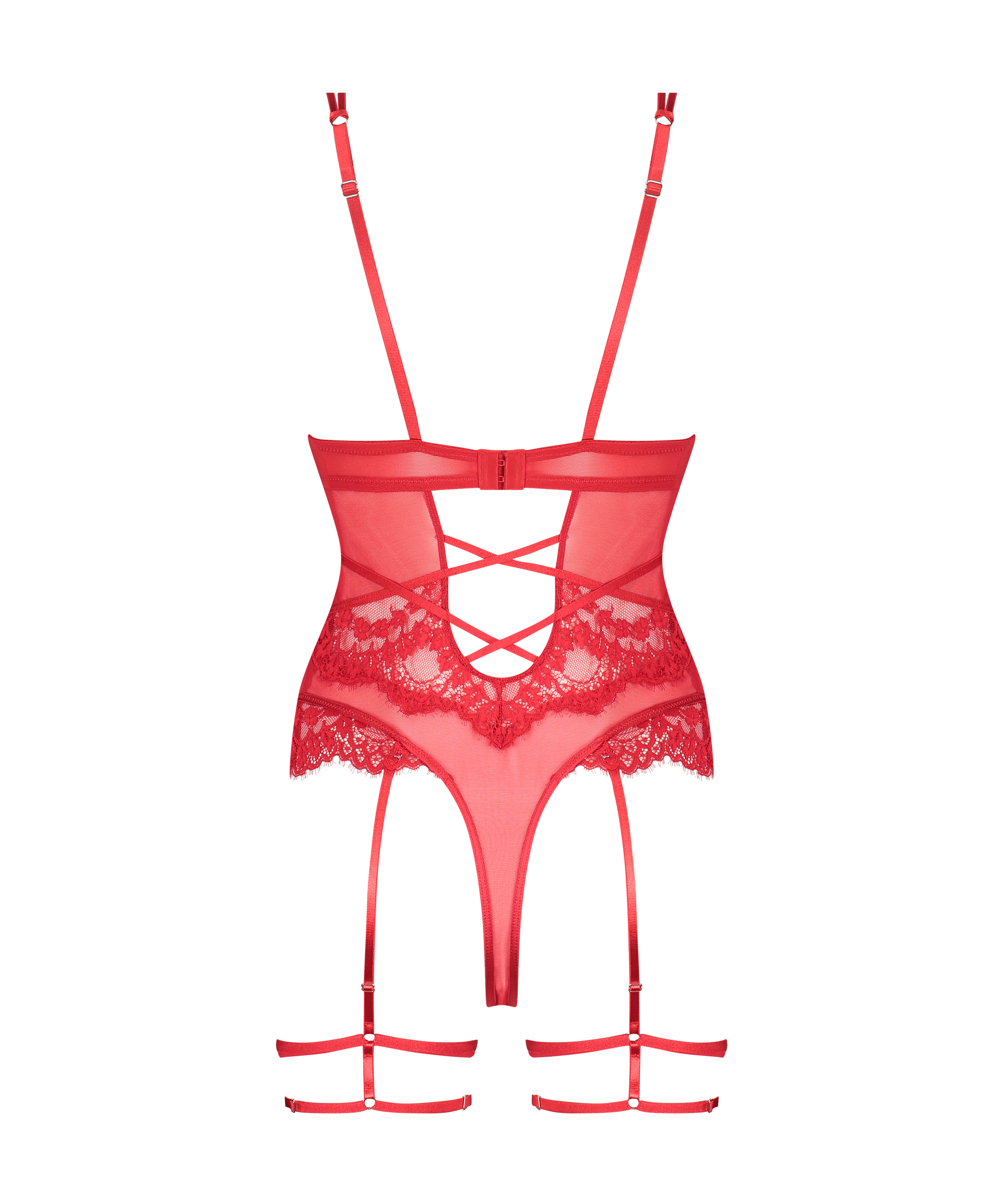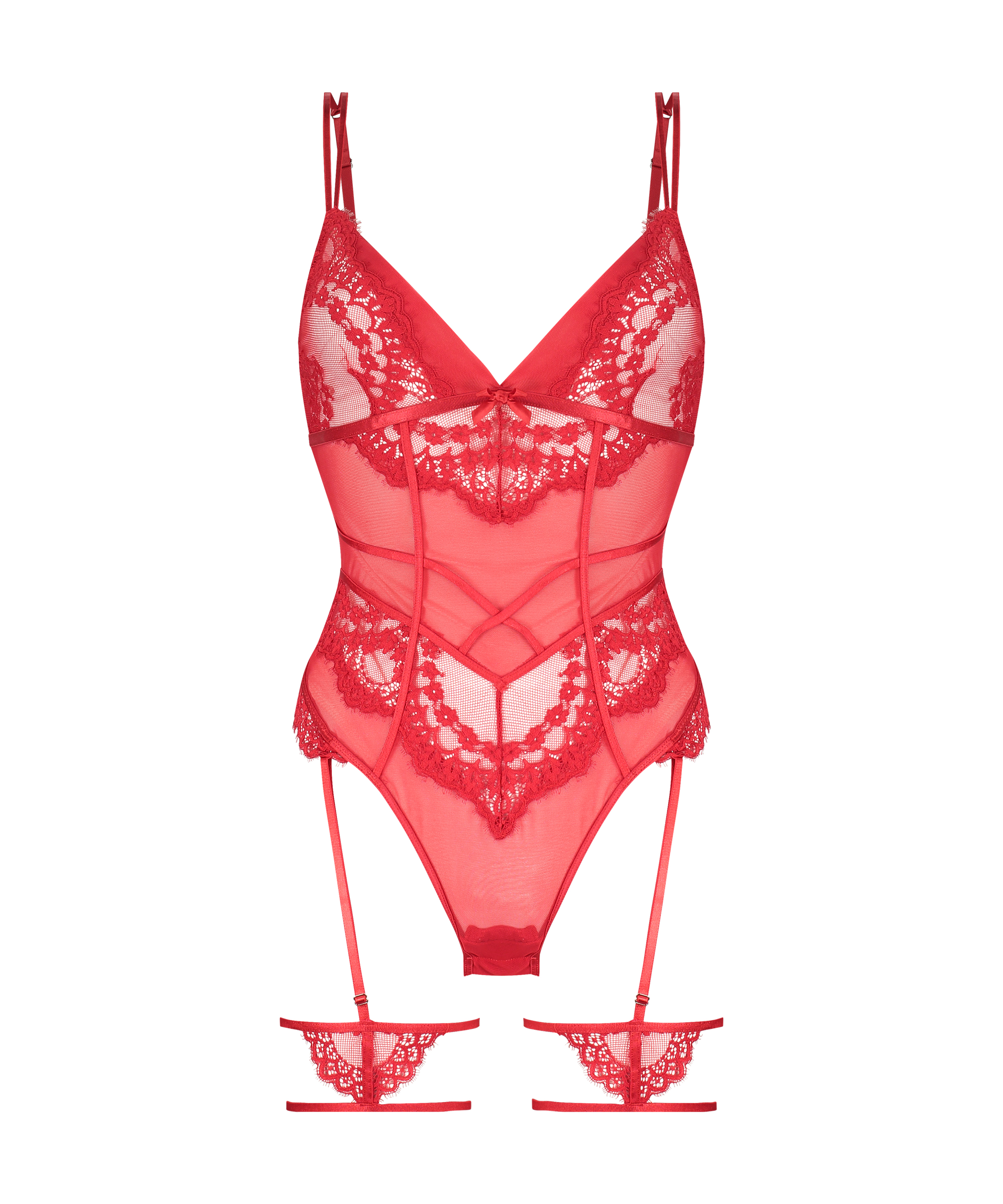 Føl dig sexet i denne fantastiske body! Med et gennemgående halvgennemsigtigt look med masser af blonde foran og på skålene. De justerbare stropper sikrer den perfekte pasform. Med stivere foran, der skaber et opstrammet look. Et sexet blondestrømpebånd med snøredetaljer sætter prikken over i'et. Sæt den sammen med en kimono for det komplette look!