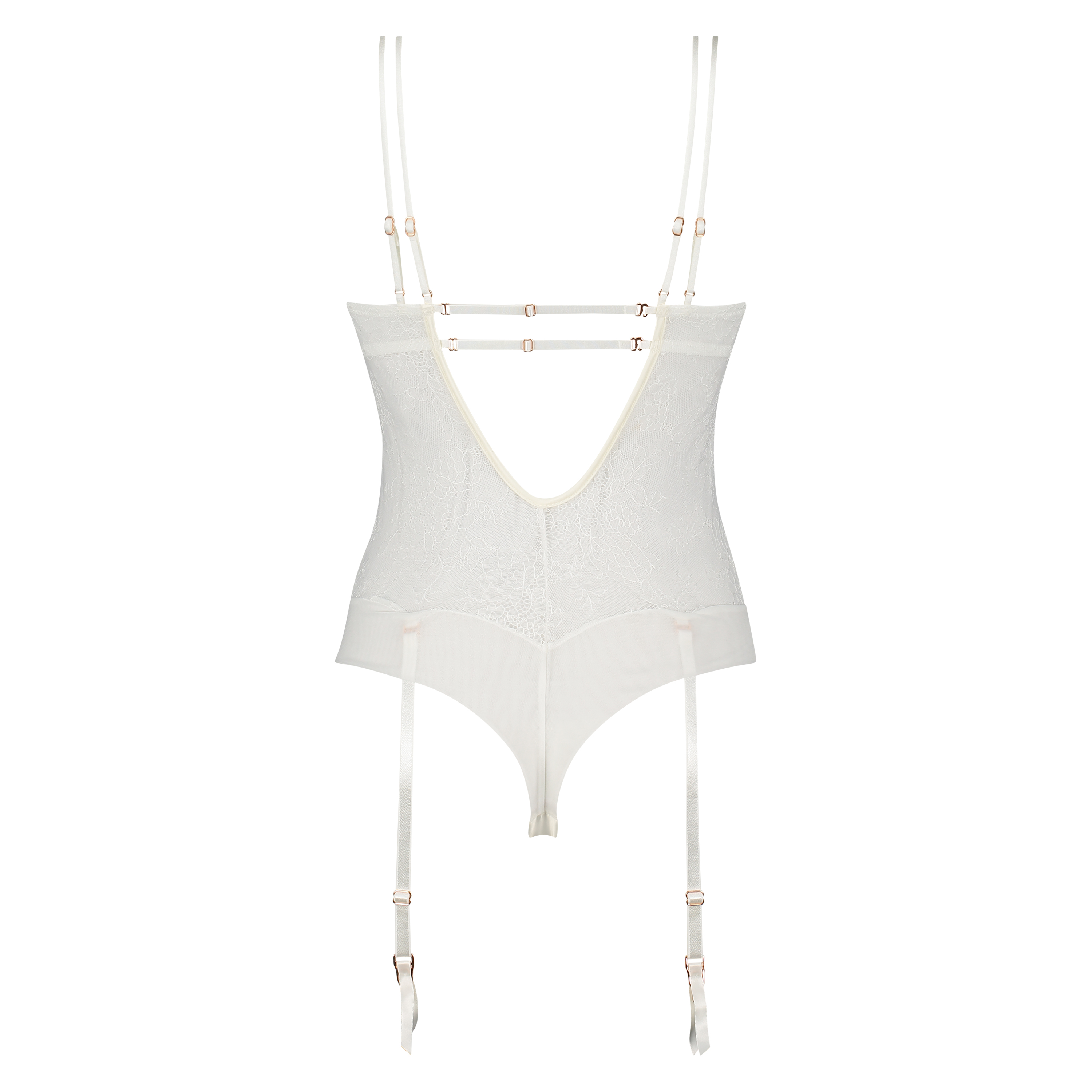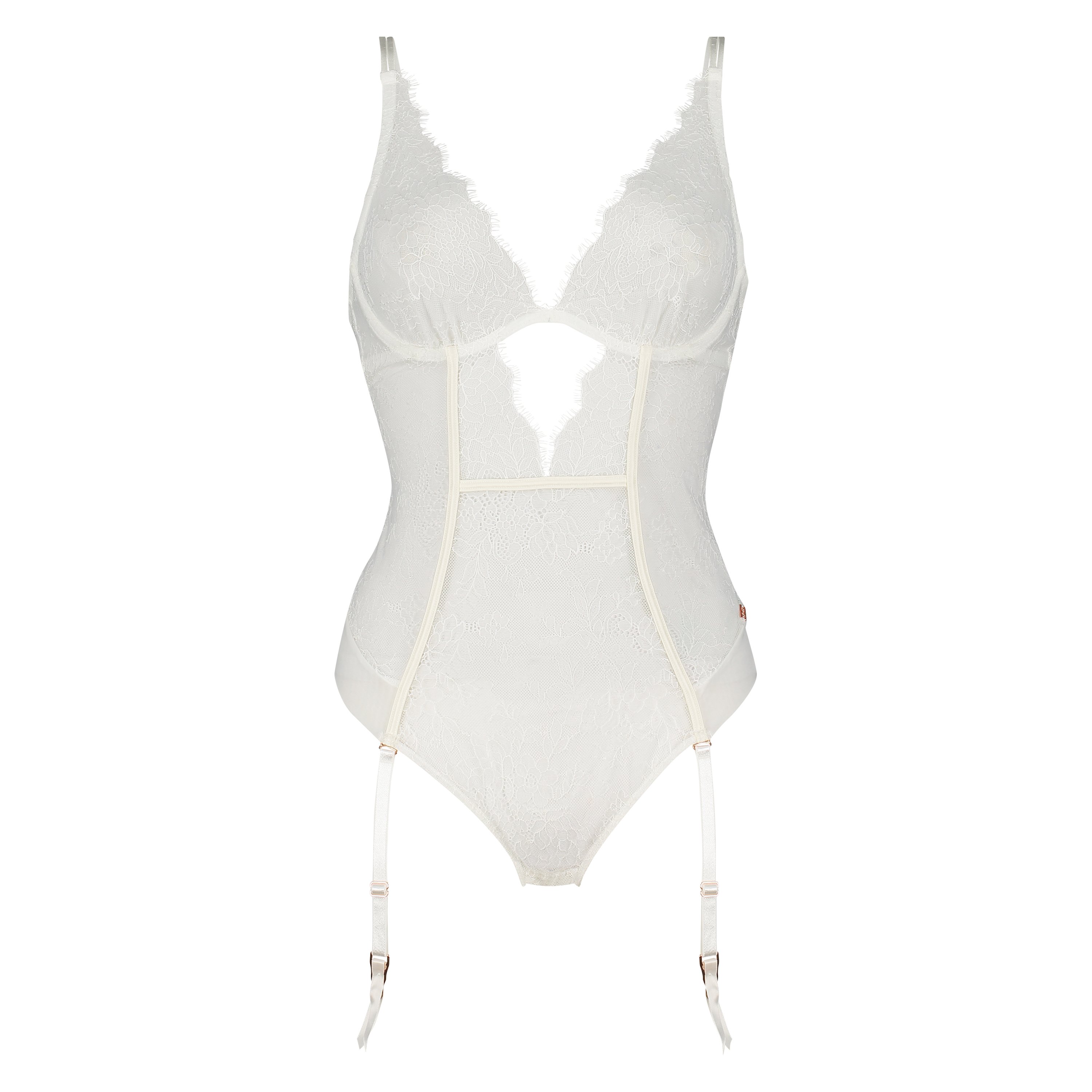 Føl dig forførerisk iført denne body! Den er udelukkende med blonder og mesh. Båndene forneden kan tages af. Kombineret med et par nylonstrømper bliver du uimodståelig! Del af Noir-kollektionen.