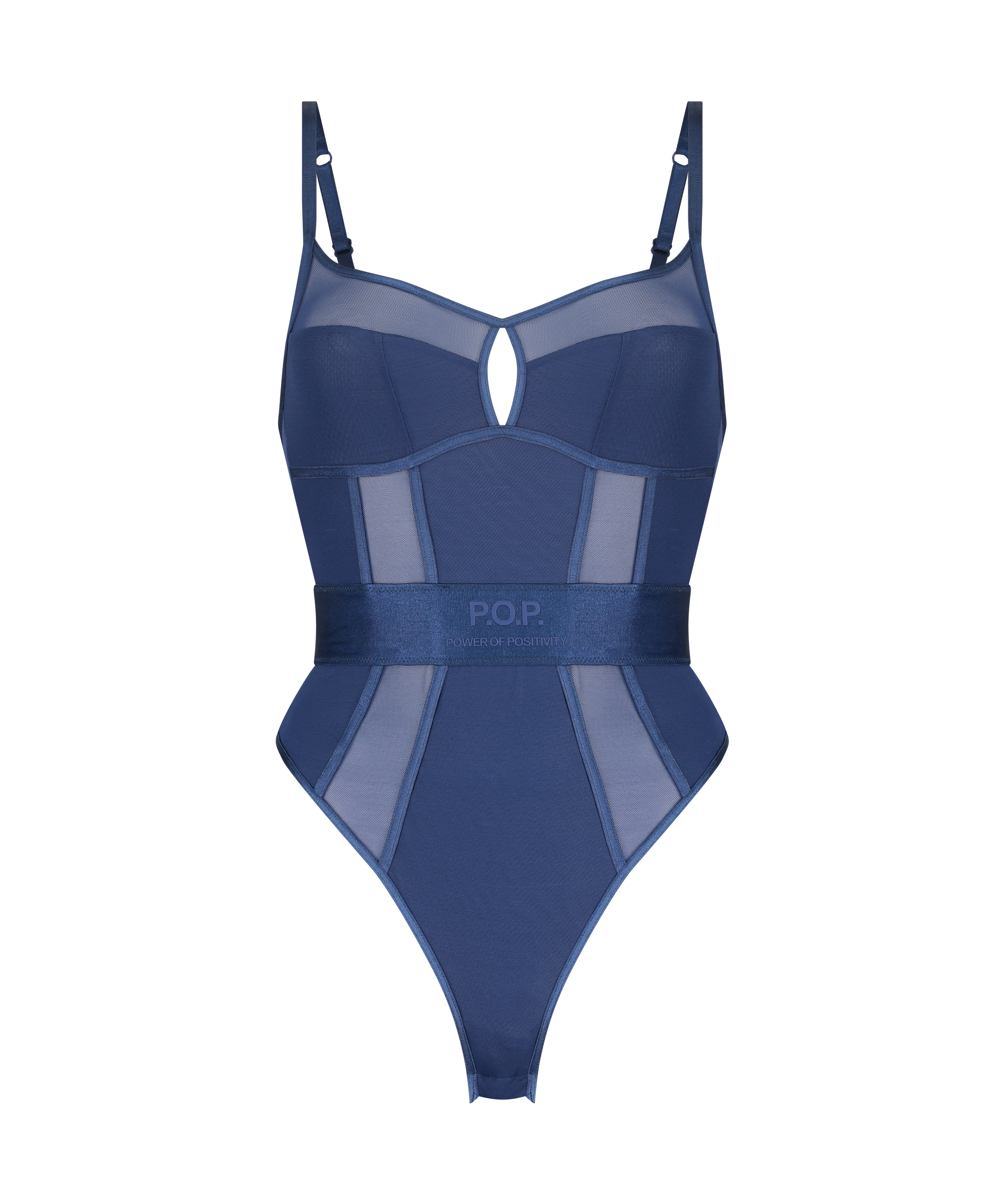 Denne lækre body har en udskåret detalje foran og meshpanellering, som gør den sexet, idet man kan se igennem den. Bodyen lukkes forneden og har skulderstropper, som kan hægtes sammen. Del af vores P.O.P. Power Of Positivity-kollektion. Som udtryk for en inspirerende og energisk "tænk positivt"-holdning omfavner denne kollektion selvrespekt, mangfoldighed og en bevidst livsstil.