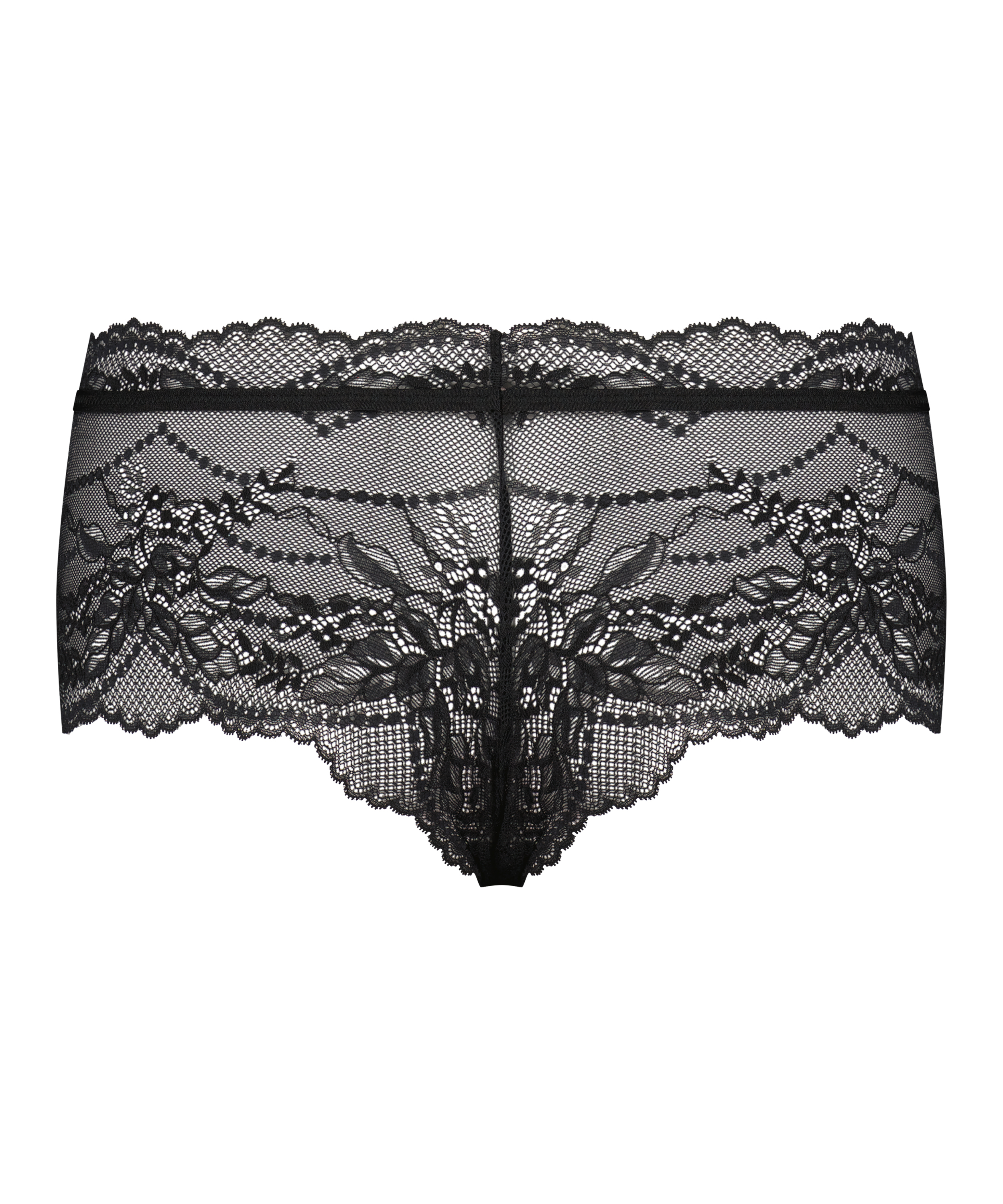 Føl dig sexet og komfortabel med denne boxer! Med et helt igennem semi-transparent look og masser af blondedetaljer. Afsluttet med ekstra varme frontudskæringer og stroppedetaljer. Mix og match med en bh for at fuldende sættet!