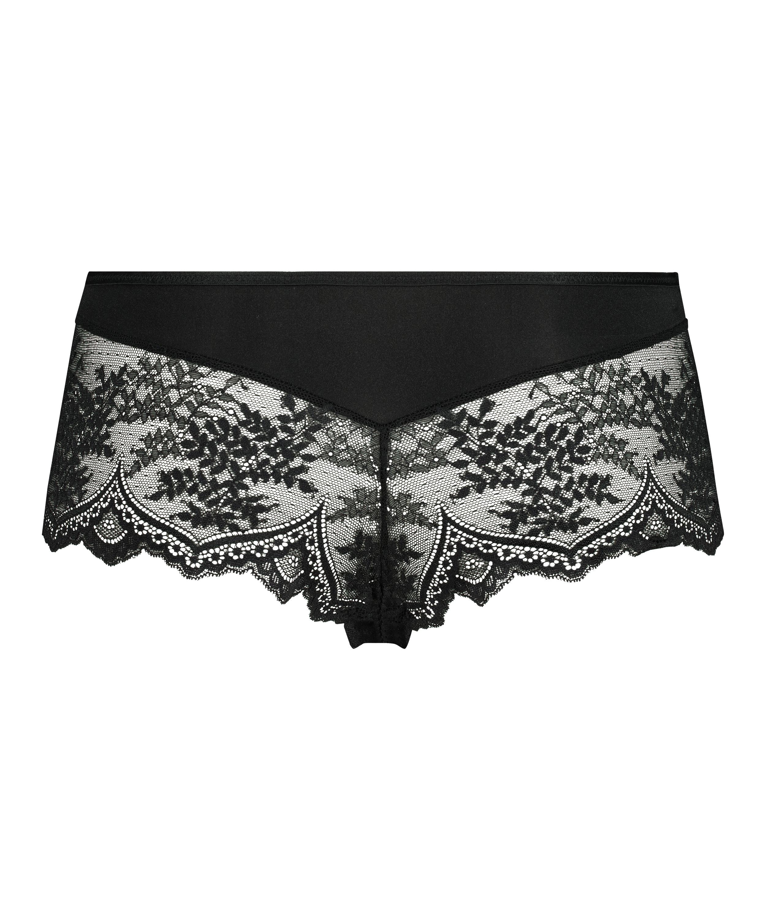 Disse supersexede boxershorts er perfekt til alle! Trussen består hovedsagelig af blonder og sidder flot. Foran sidder en sløjfe. Match med en passende bh eller bralette, så du får et flot sæt.