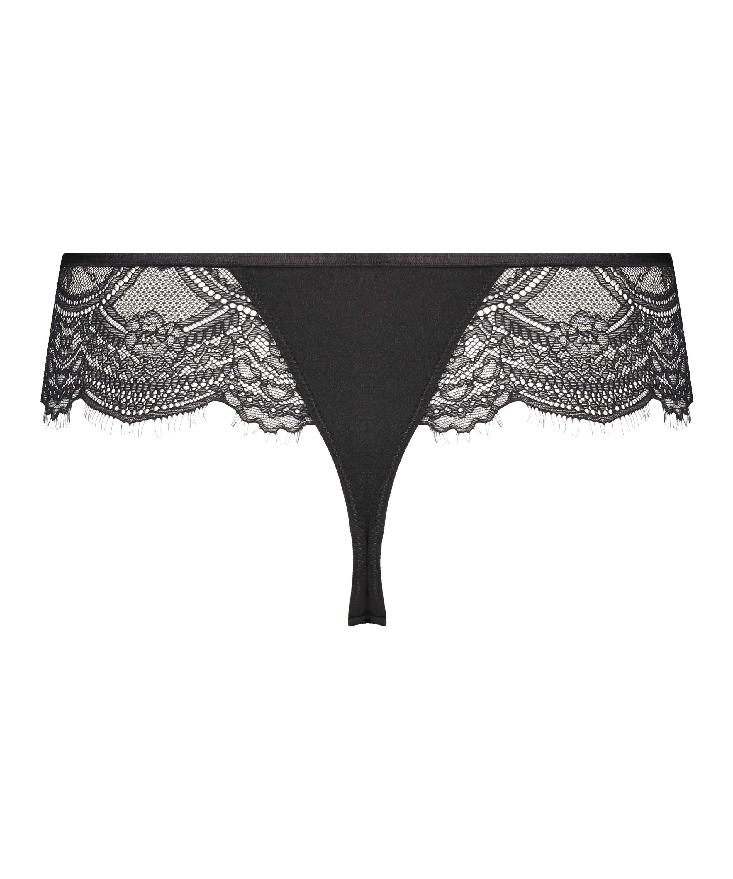 Denne boxer-streng er mega sexet! Trussen har mange blonder og en flot stropdetalje foran. Match med en passende bralette eller bh får du det komplette look.