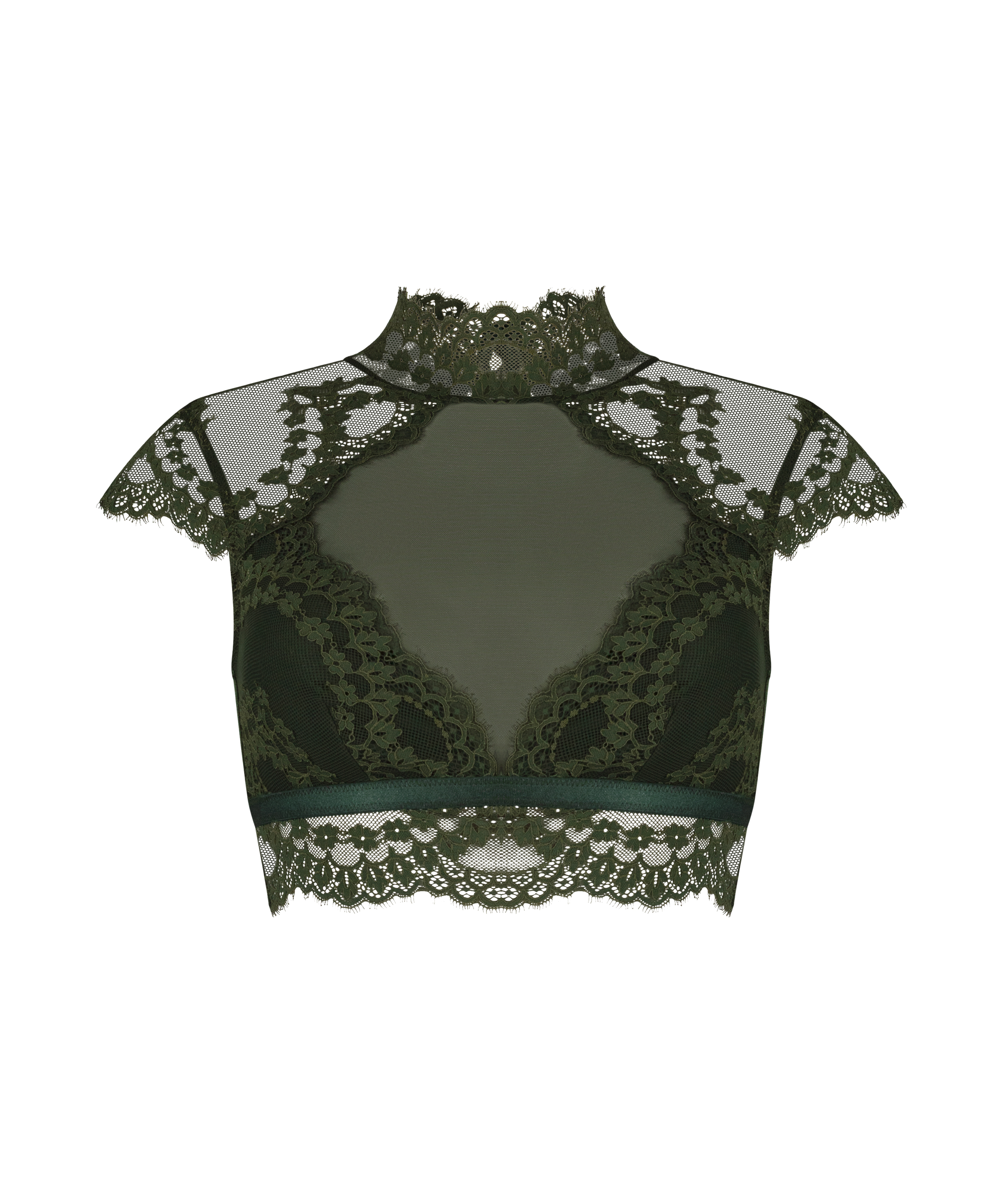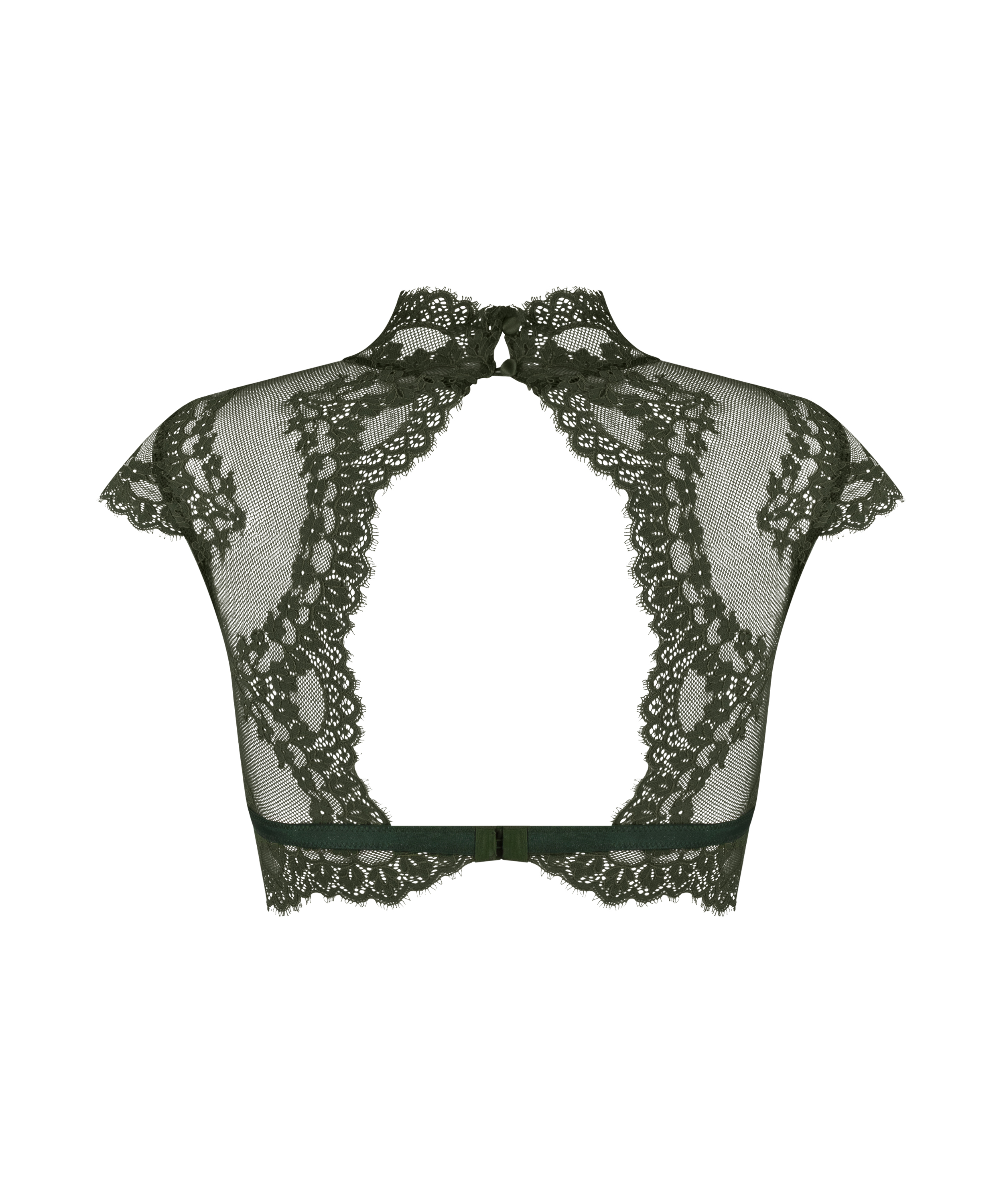Føl dig sexet i denne bralette-top! Braletten består af blonder og er med kapærmer, sexet åben ryg og satinknapper bag på kraven. Toppen er også perfekt at have på en aften i byen!