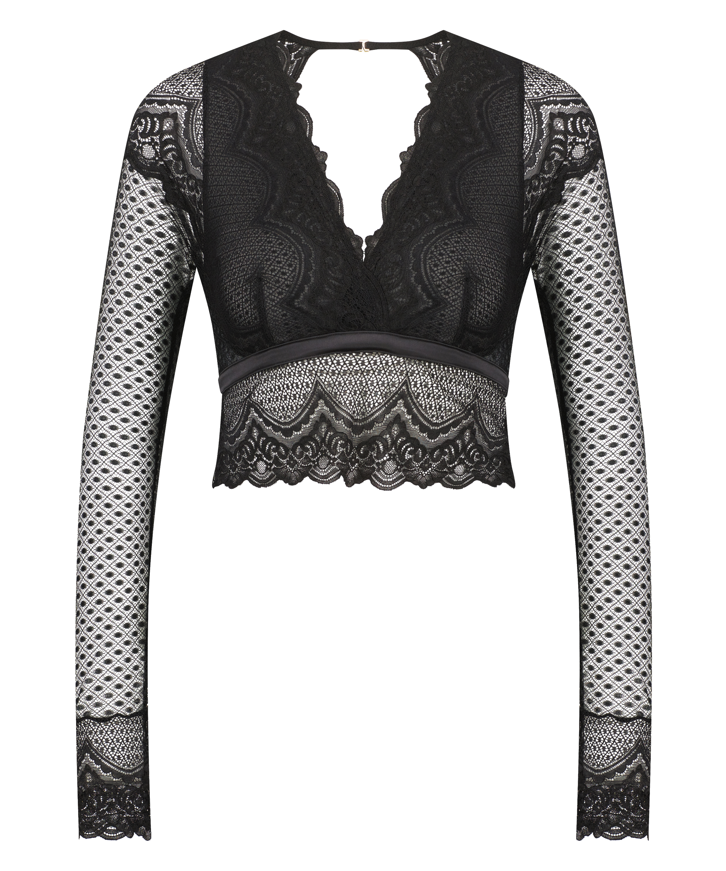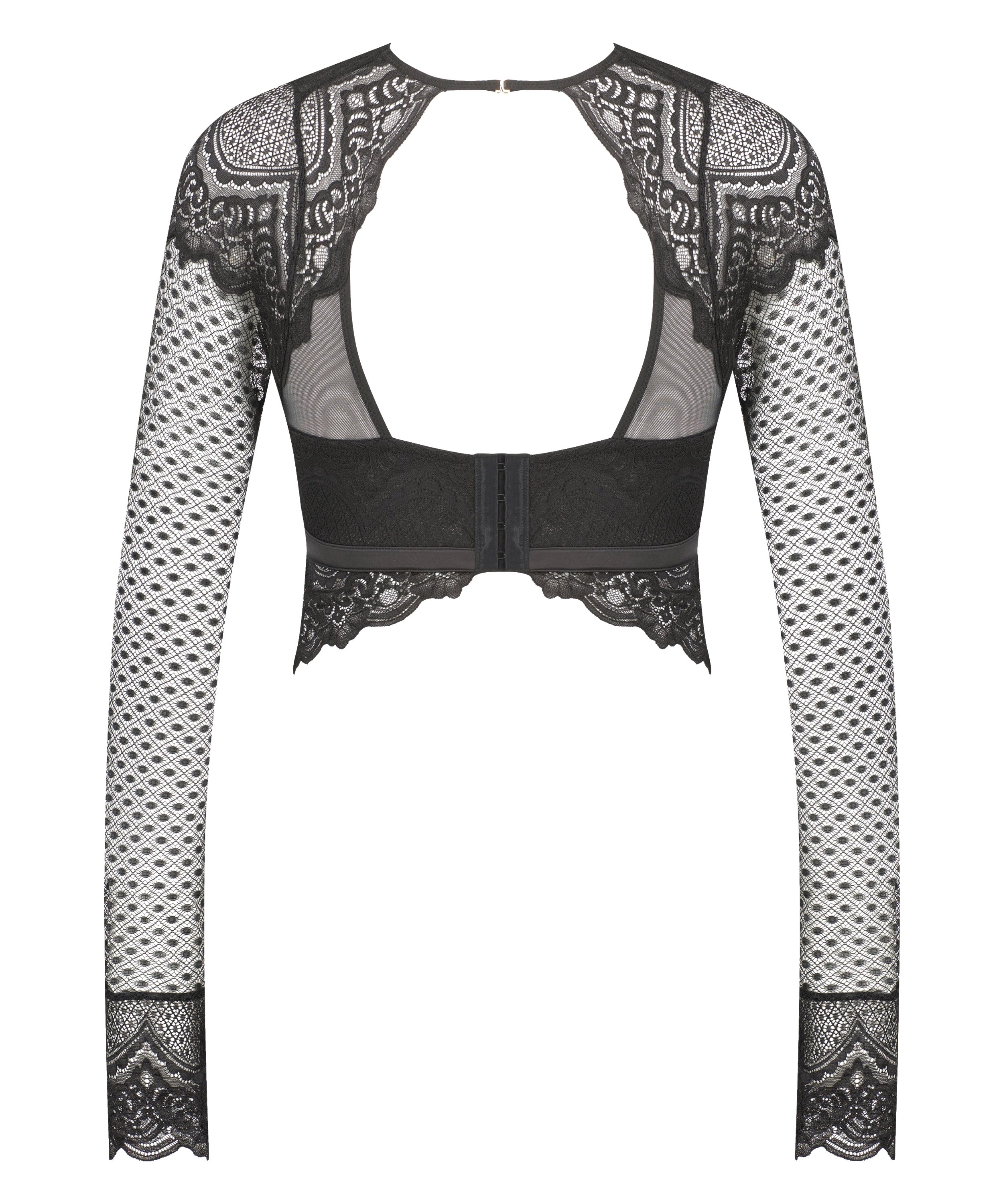 Føl dig sexet med denne bralette! Den langærmede bralette er dækket med blonder for, som giver et ekstra sexet look. De upolstrede skåle og den åbne ryg giver ekstra god komfort. Tjek kollektionens matchende trusser!