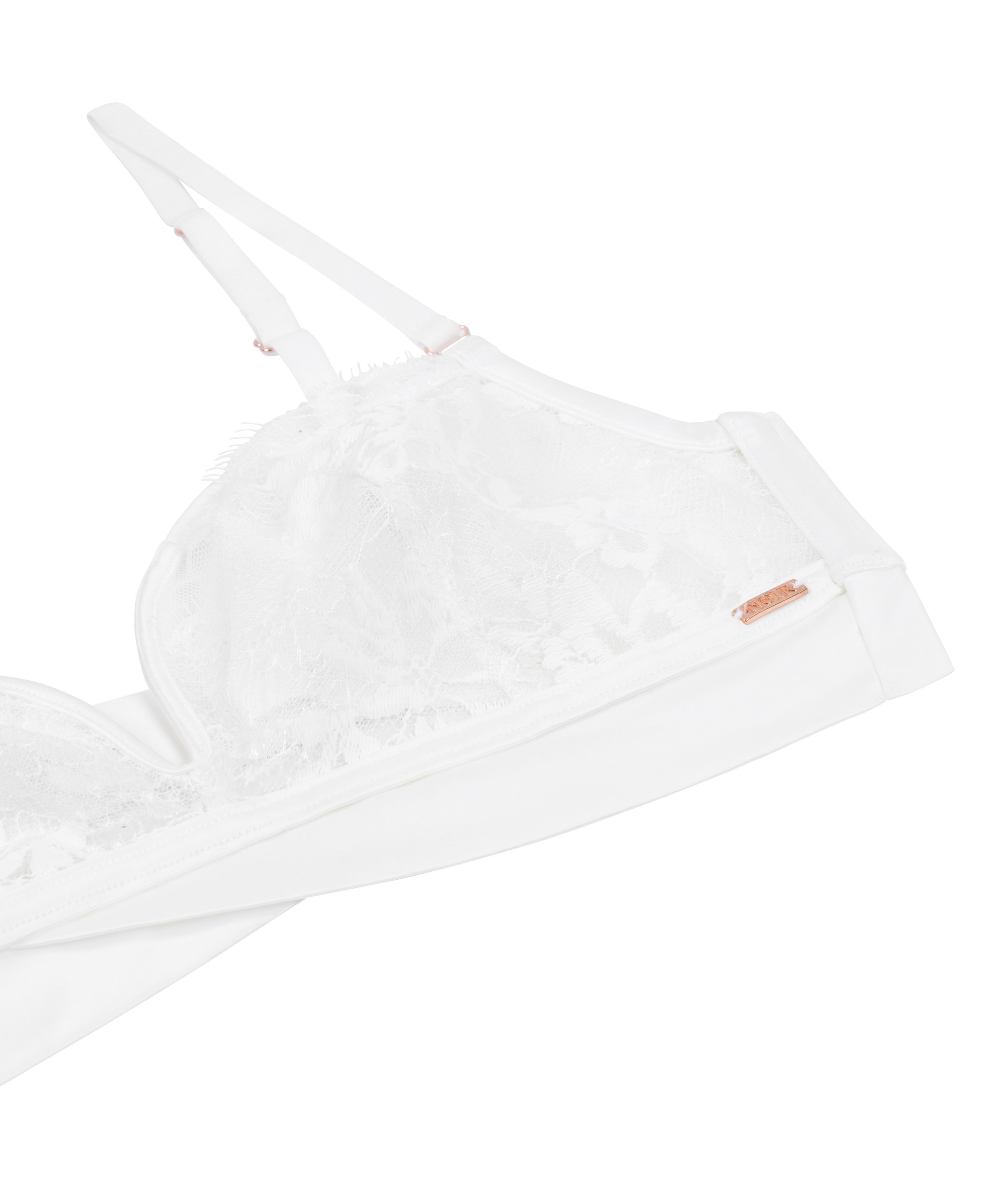 Løft din lingerikollektion med vores Tiah bralette, en perfekt kombination af blødhed og elegance. Satin giver en luksuriøs følelse mod huden, mens blondedetaljerne tilføjer et delikat touch.