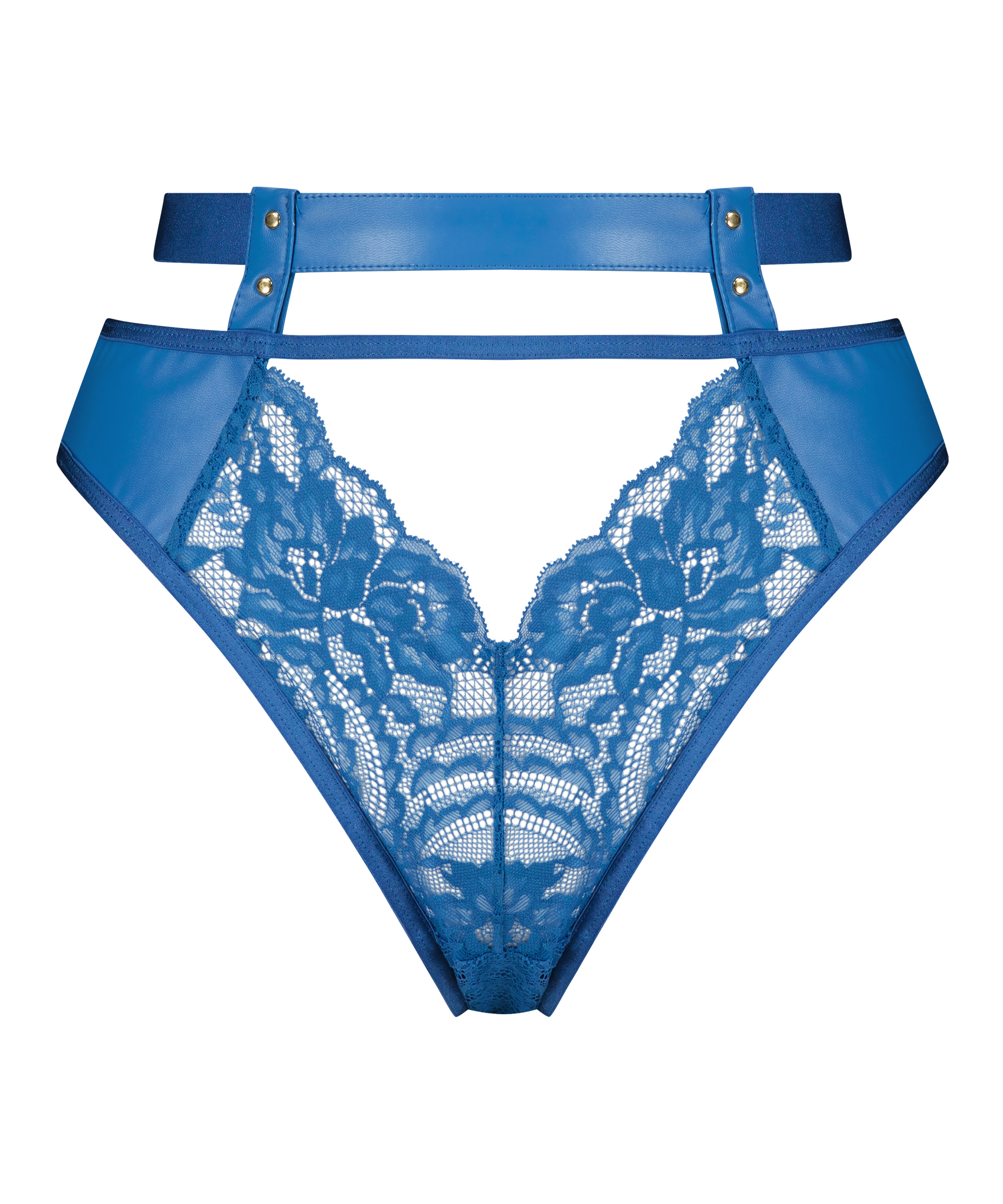 Føl dig supersexet i denne brasilianske trusse! Den brasilianske trusse er forsynet med blonder og læderdetaljer! Den brasilianske trusse er bundløs og har en fræk cut out-detalje på forsiden. Båndet langs overkanten er forsynet med studs. Kombineret med en passende bh har du et komplet sæt! Del af Private-Kollektionen.