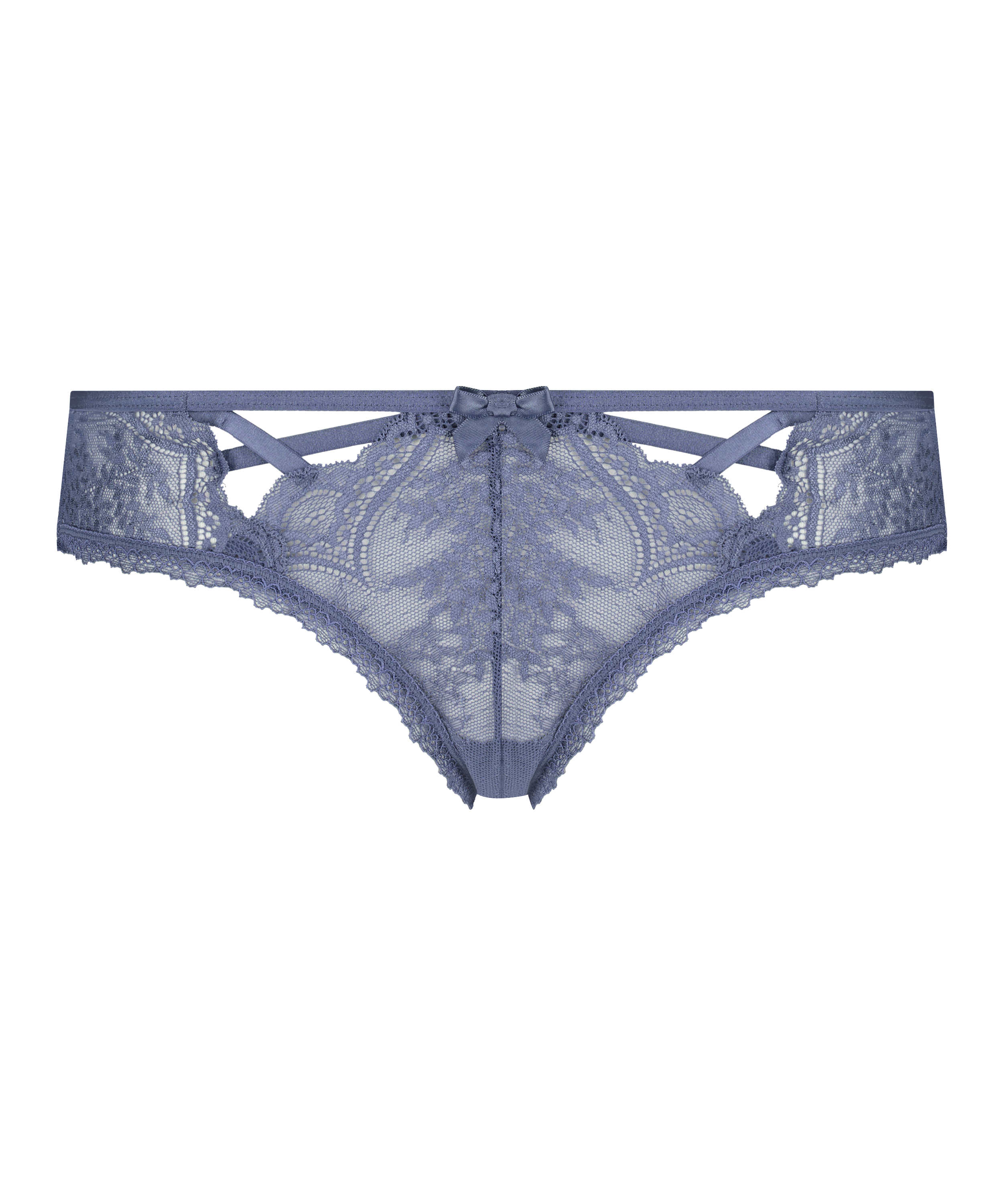Denne brasilianske trusse klæder dig fantastisk! Den er lavet af næsten helt af blonder og indeholder sjove finesser som en sløjfe og udskårne detaljer. Kombiner med din yndlings-bh i samme farve.