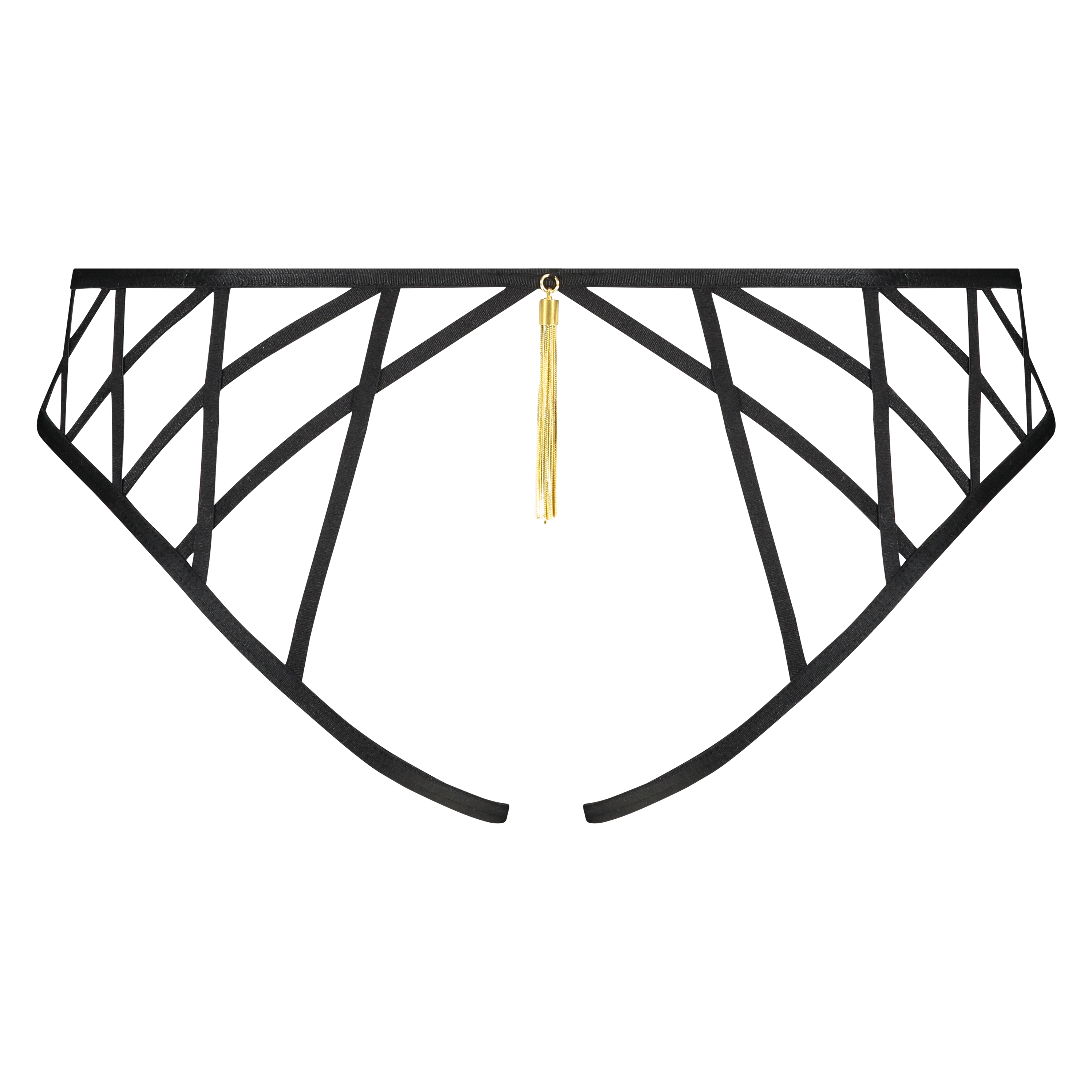 Føl dig supersexet i denne brasilianske trusse! Den brasilianske trusse har en blondedetalje foran, men består derudover af sexede straps! Den sexede choker sidder fast på den brasilianske trusse og er forsynet med gyldne detaljer. Kombinér med matchende items fra Private-kollektionen!