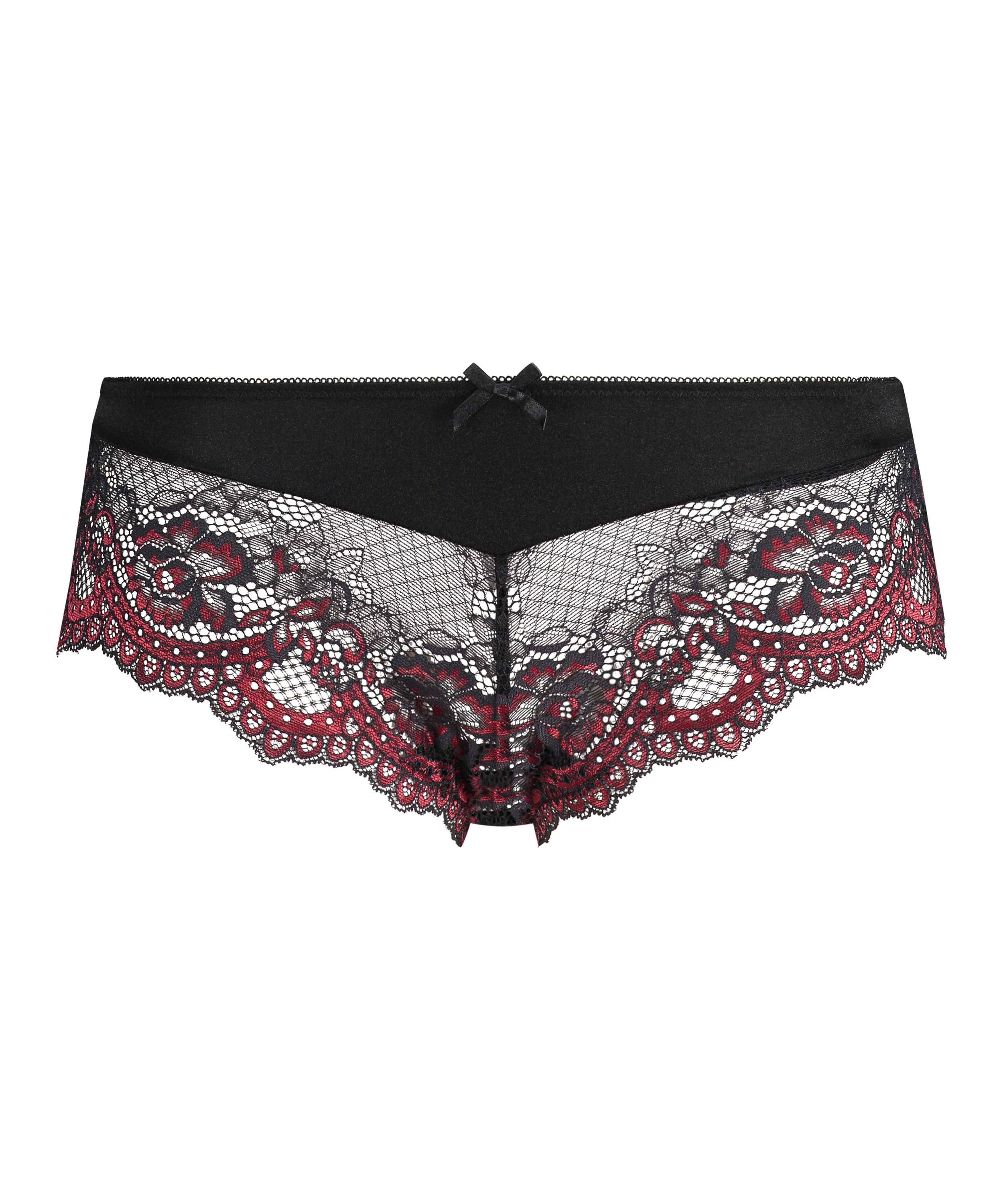 Føl dig fantastisk i disse smukke brasilianske shorts! De indeholder en masse blonder med et blomsterprint. På forsiden er placeret en lille sløjfe.Lette at kombinere med bh'er i samme farve!