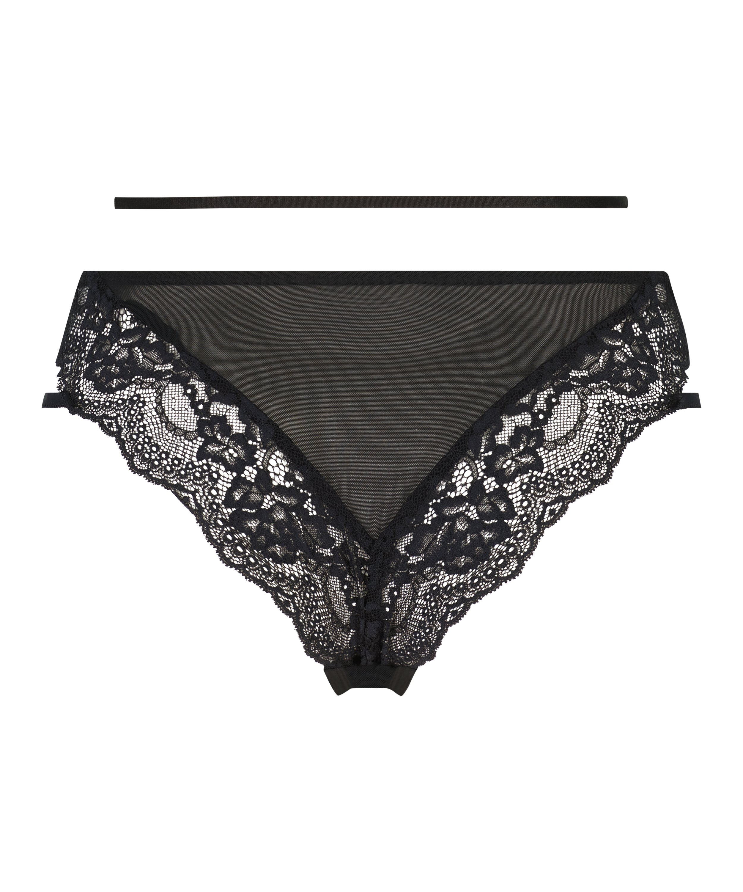 Snyd ikke dig selv for denne søde brasiliansk trusse! Med et heldækkende blondelook foran og bagpå. Der er stropdetaljer foran og i siden for ekstra detaljer. I skridtet er der et superblødt materiale for den bedste komfort. Find den matchende bh!