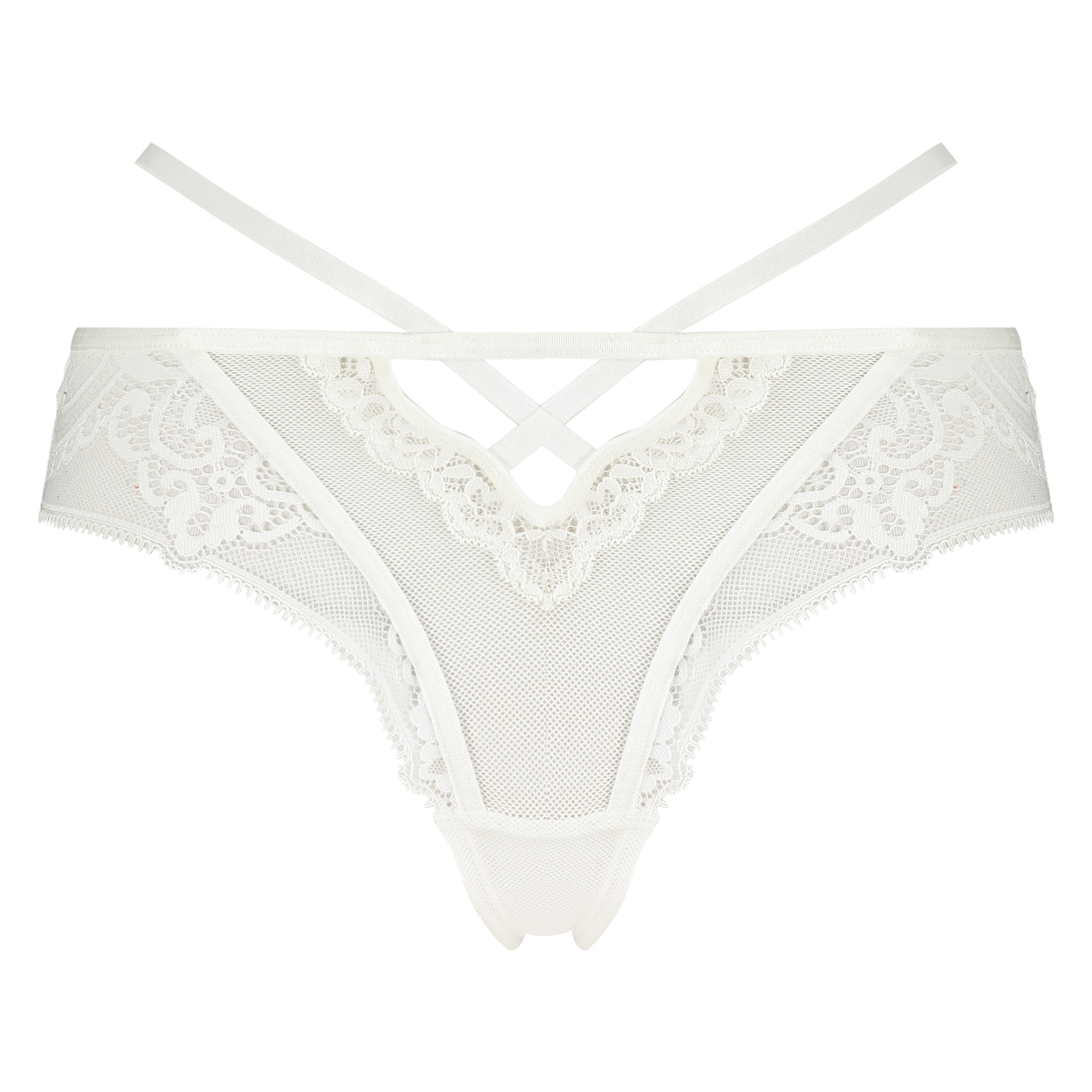 Føl dig selvsikker i denne høje brasilianske trusse! En brasiliansk trusse med forskellige detaljer, såsom blonderne, meshen og cut-outen, der gør den ekstra speciel. Kombinér med en matchende bh for et smukt lingerisæt!