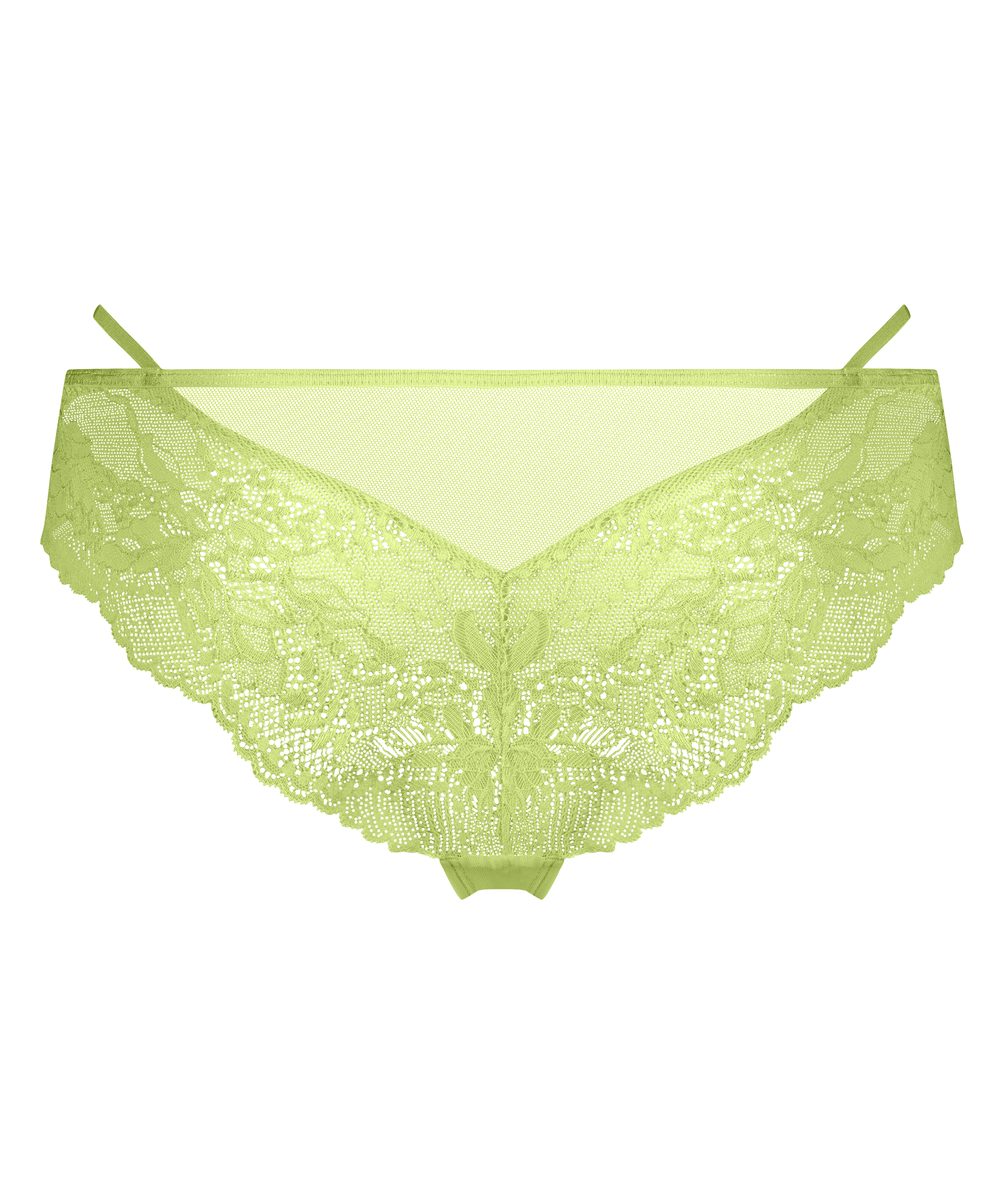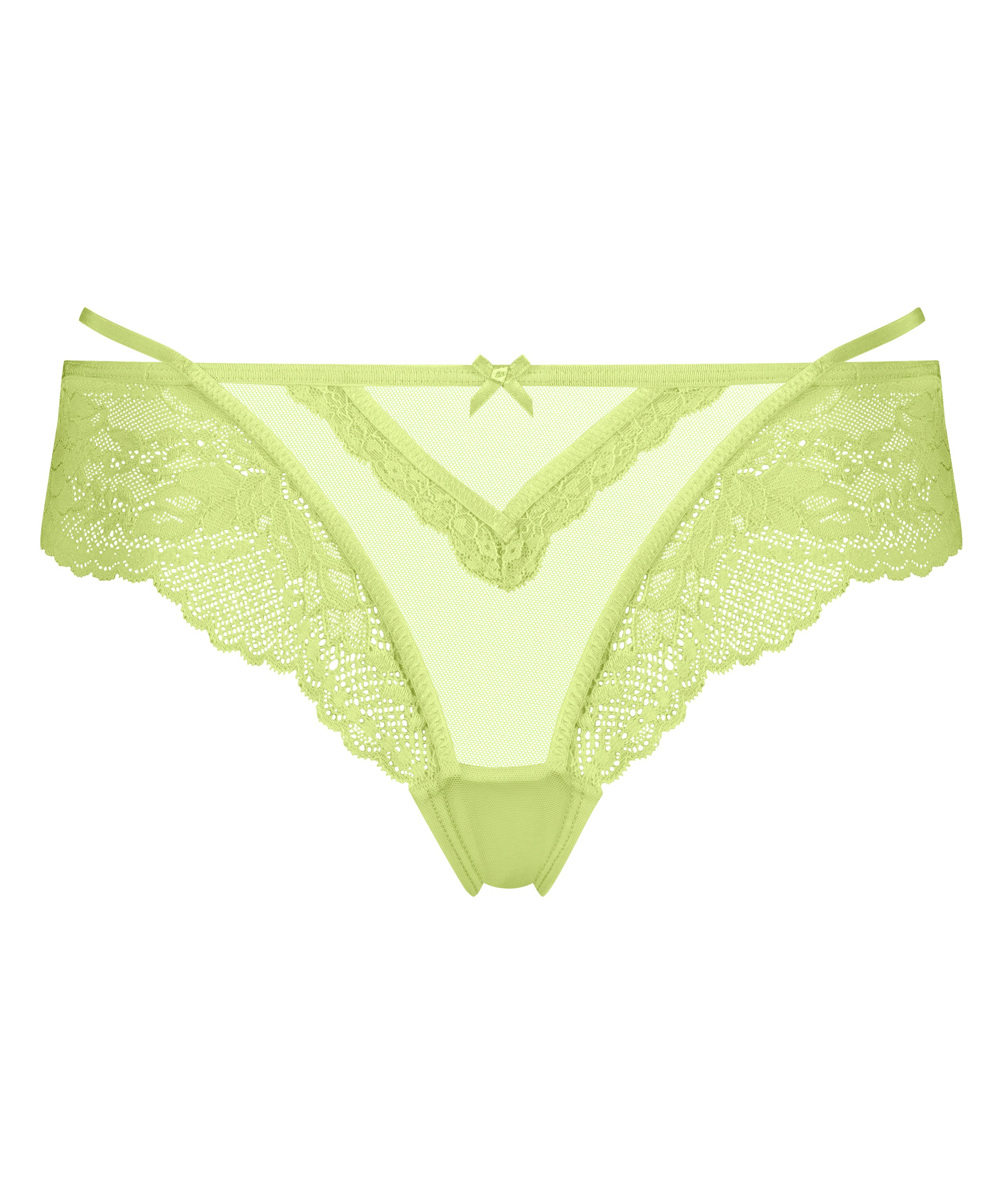 Denne brasilianske trusse har virkelig den der wow-effekt! Trussen er lavet med mange blonder og er forsynet med en sløjfe foran. Kombinér med den rigtige bralette eller bh for at fuldende dit sæt.