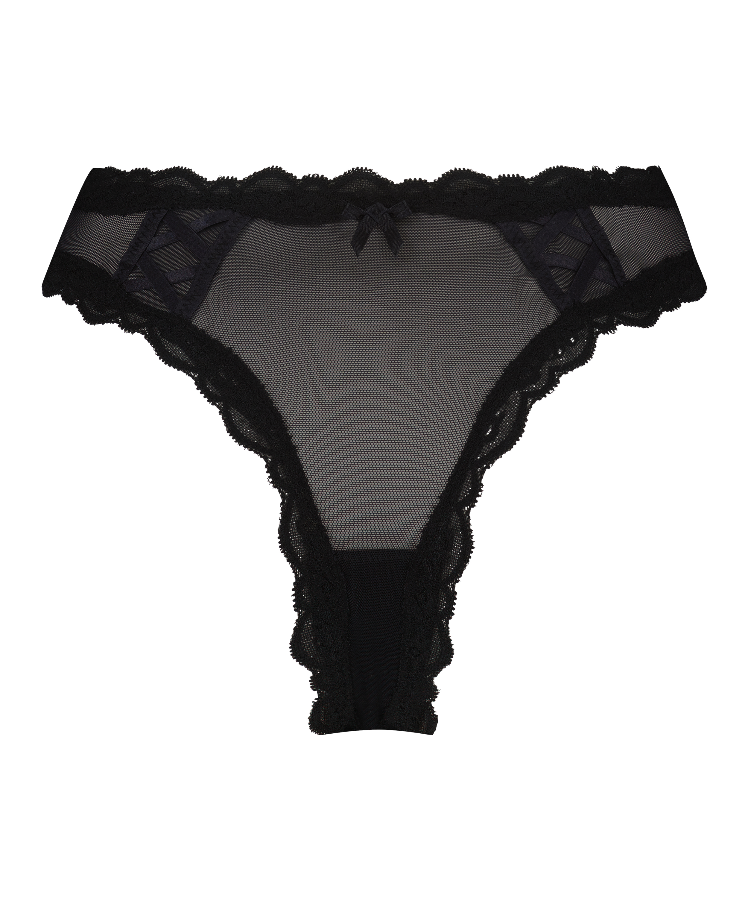 Skynd dig at få fingrene i denne brasilianske trusse! Denne fantastiske brasilianske trusse har høj benudskæring og et lille bindebånd foran. Sæt den sammen med en matchende bh.