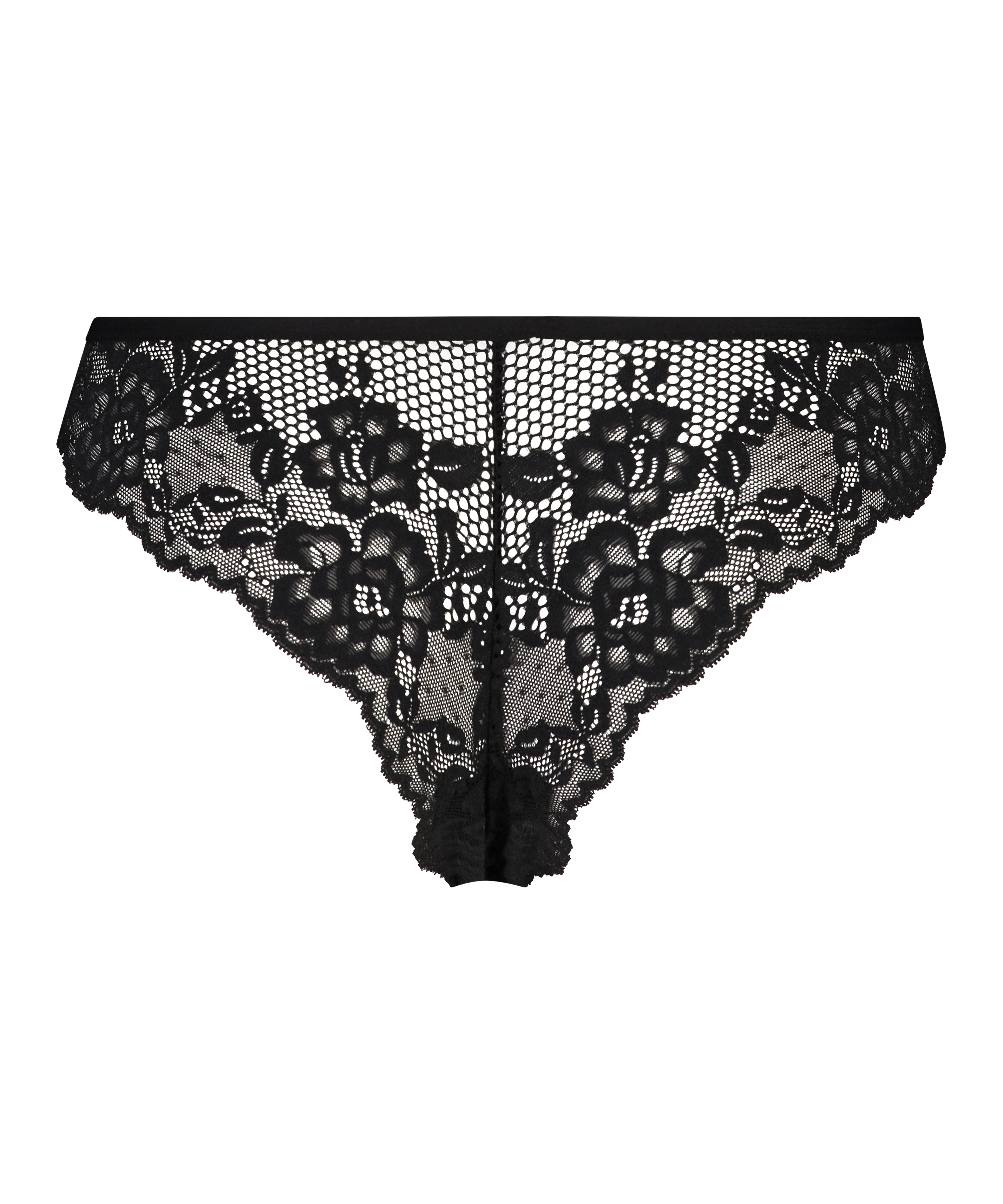 Denne brasilianske trusse er halvtransparent og med masser af blondestof. Den lille sløjfe foran fuldender den!