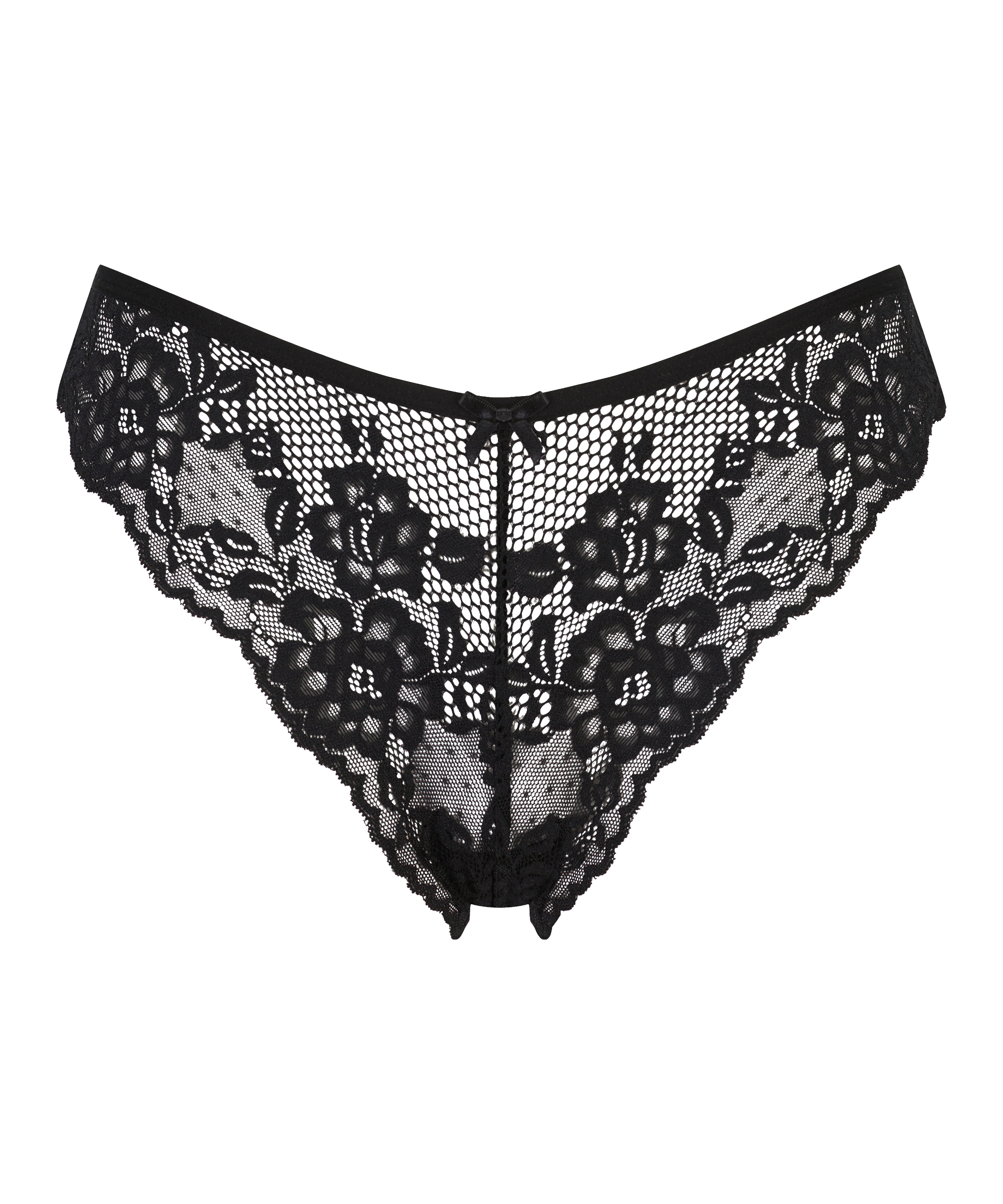 Denne brasilianske trusse er halvtransparent og med masser af blondestof. Den lille sløjfe foran fuldender den!