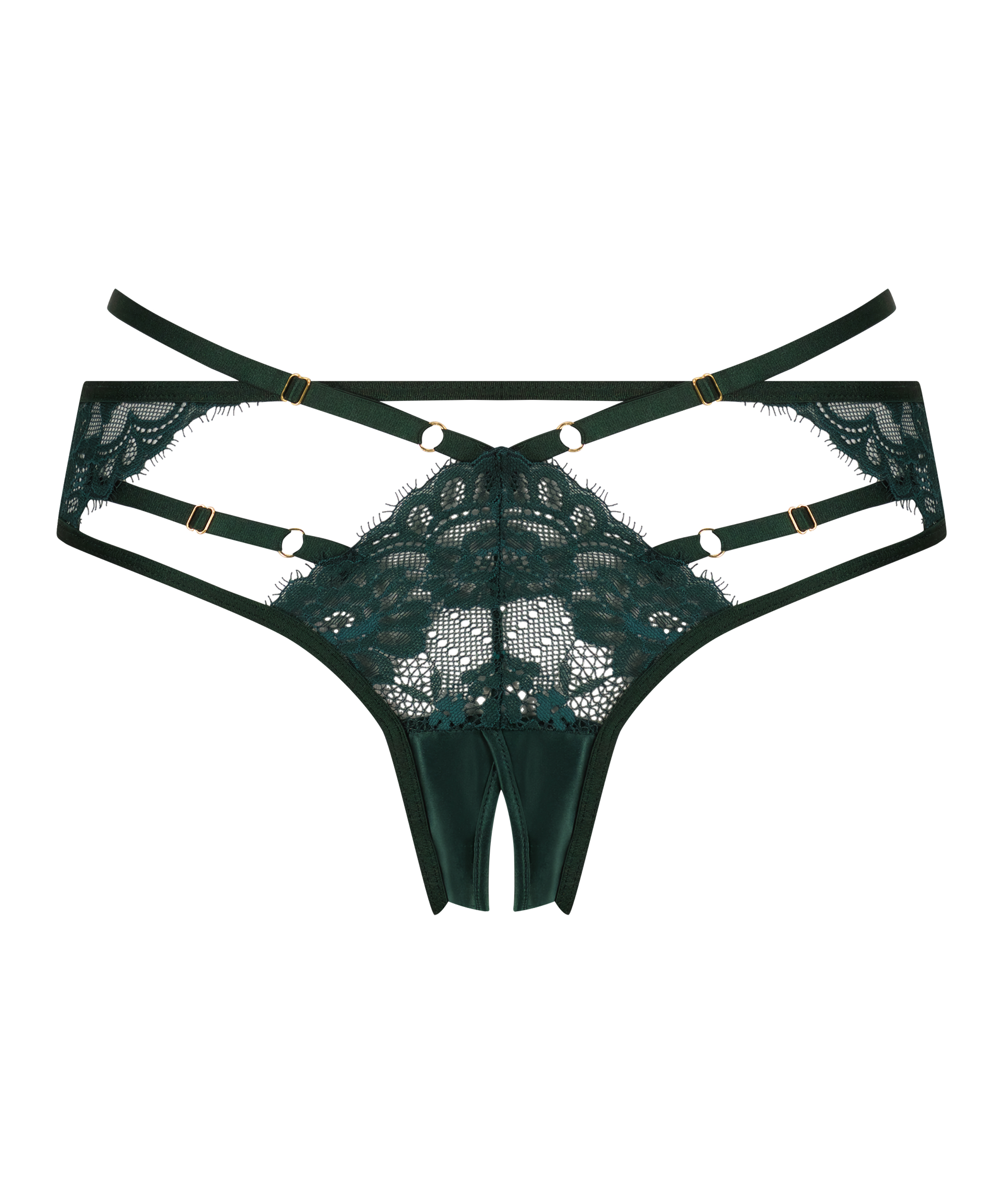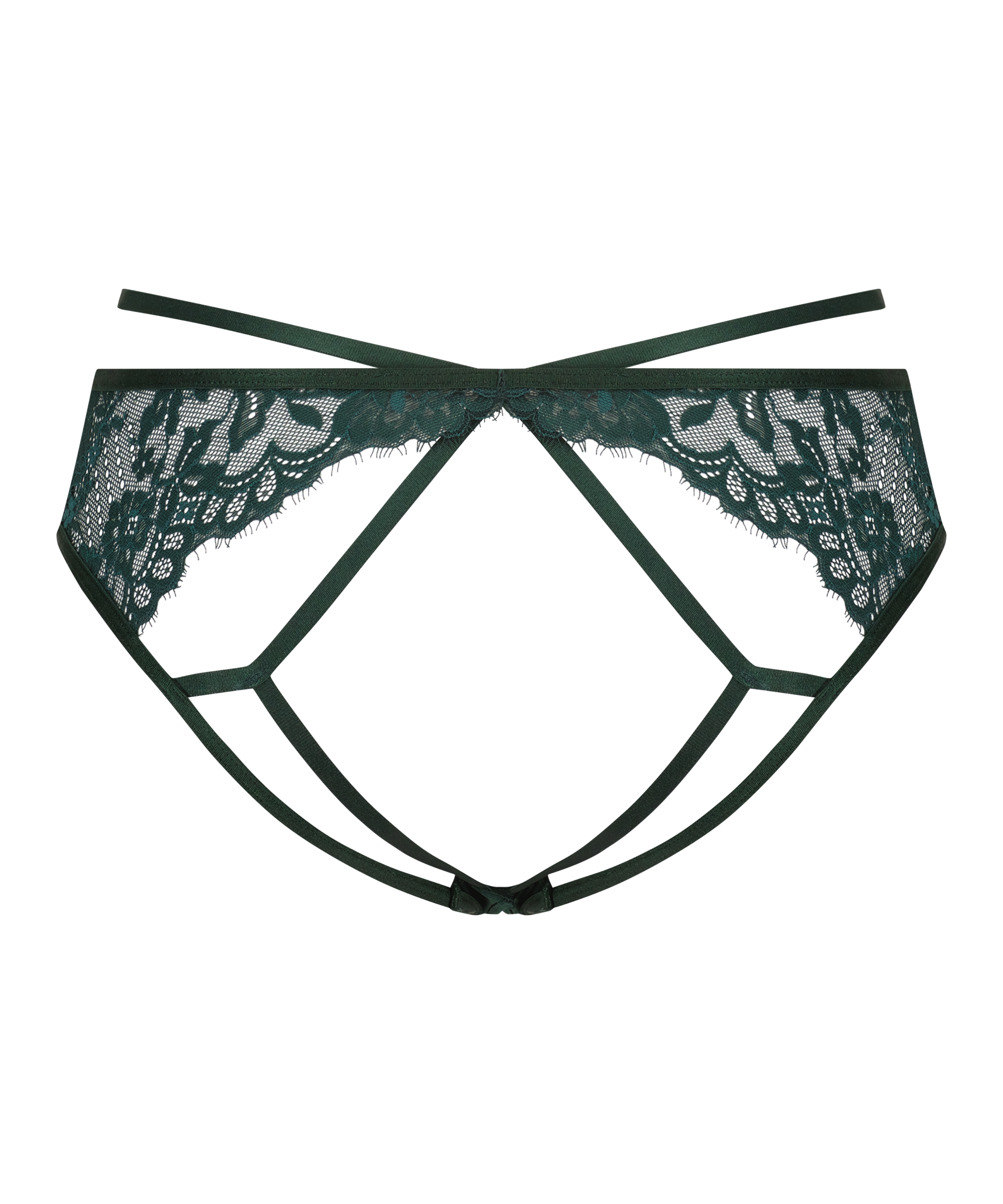 Disse sexede trusser er perfekte til en spændende nat! Den brasilianske trusse er bundløs og med blonder. Del af vores Private-kollektion. Match med andre ting fra denne kollektion!
