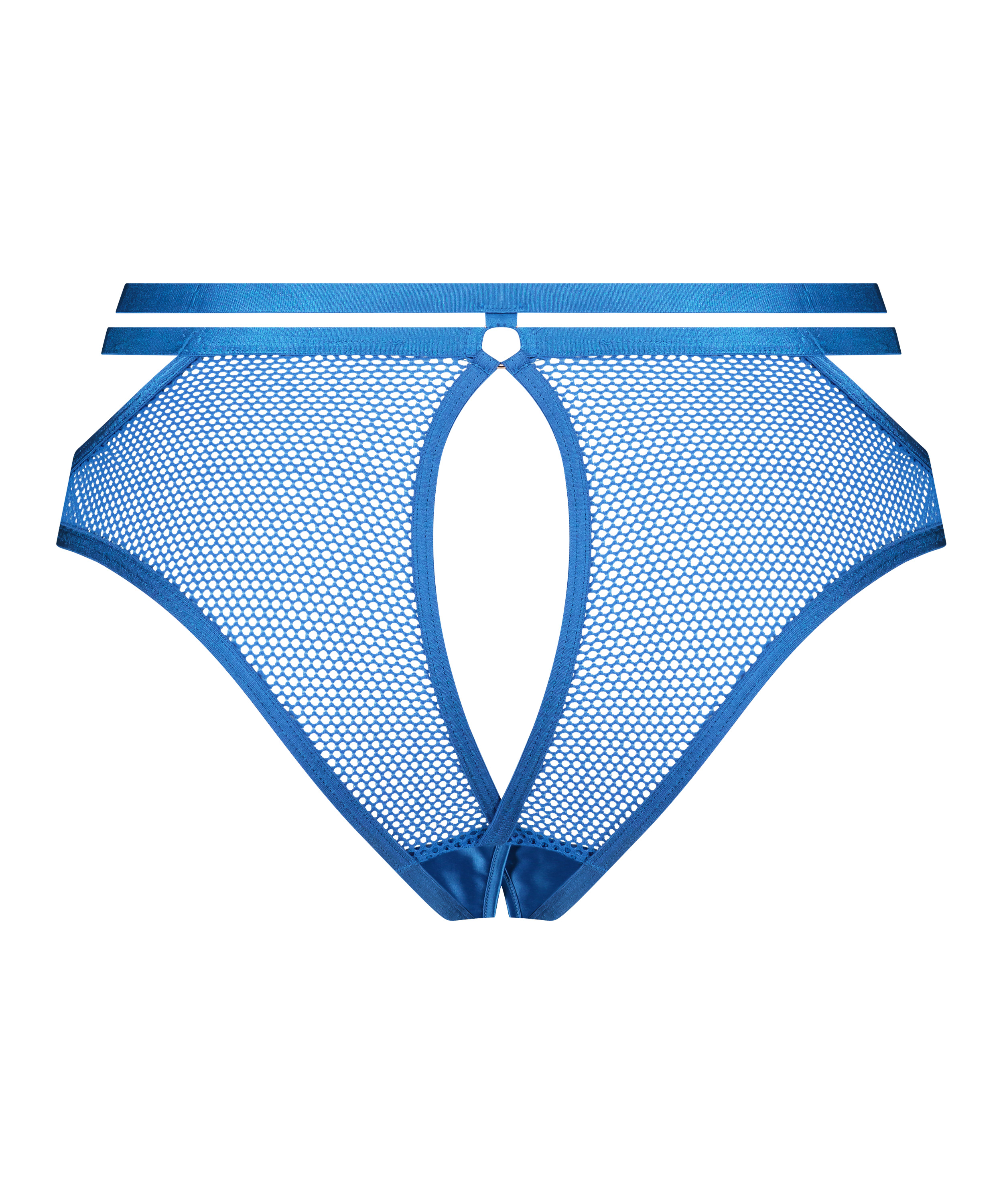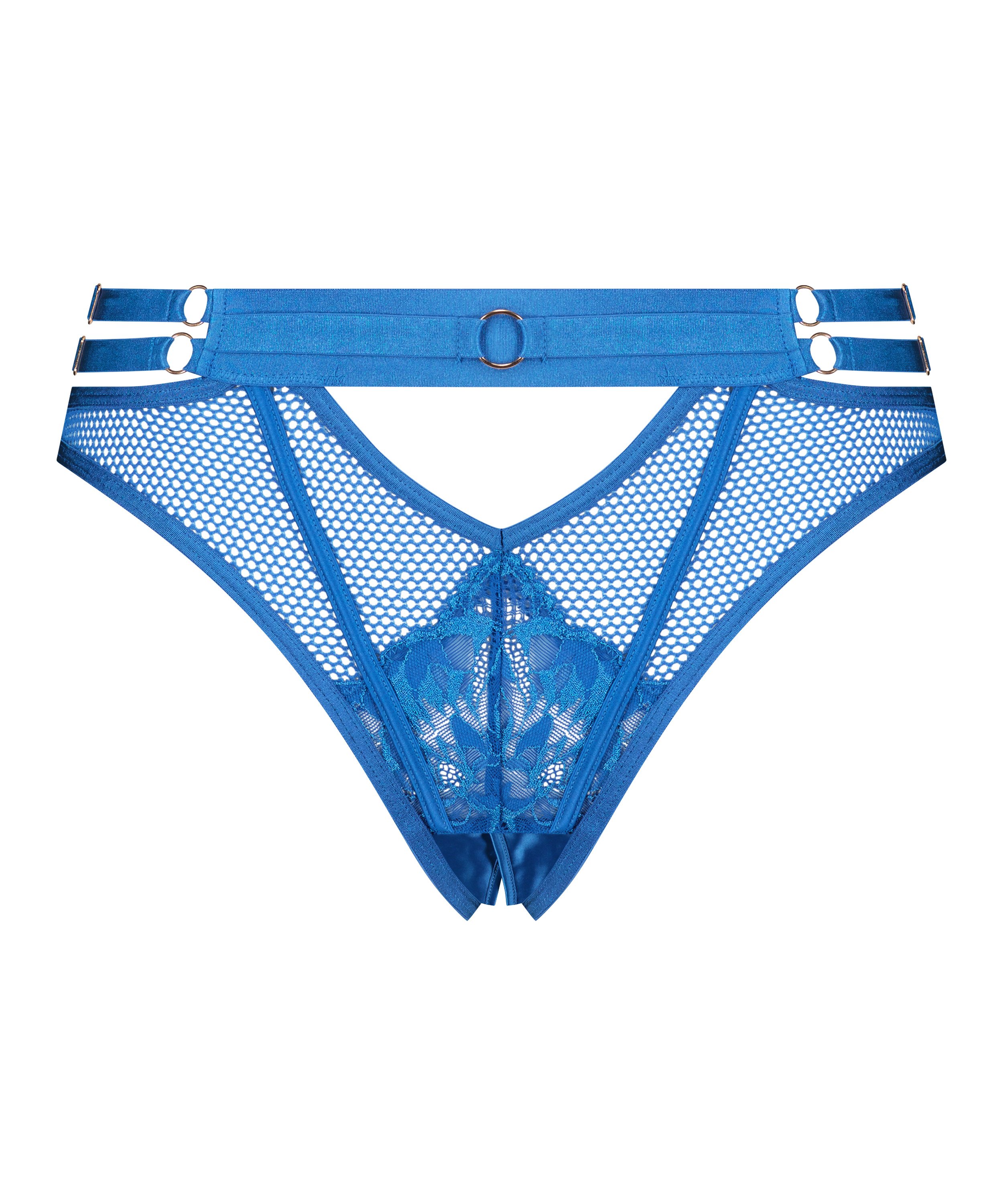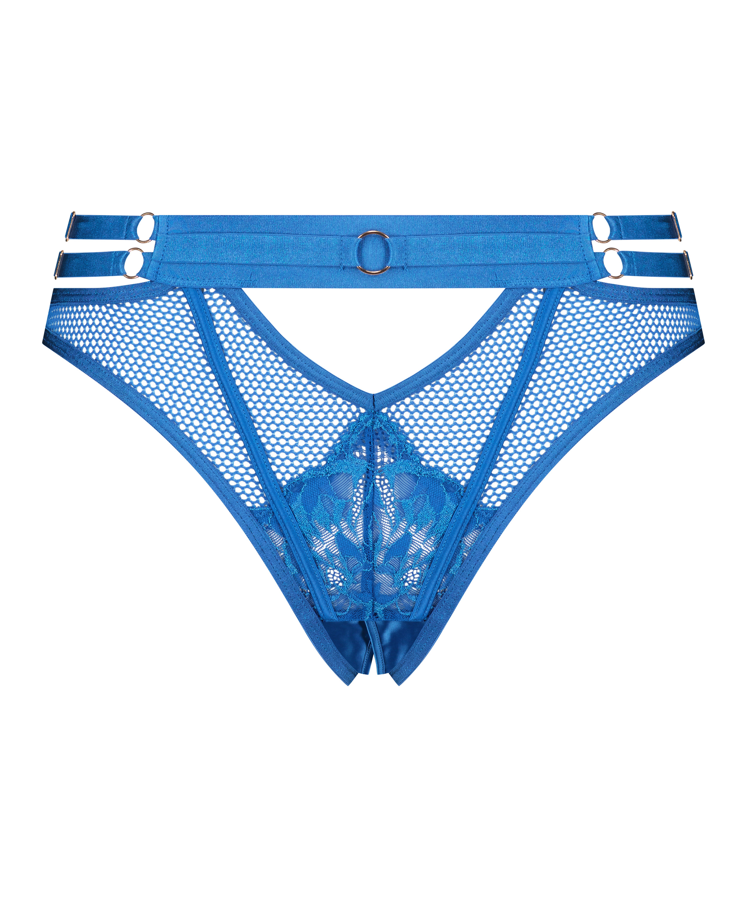 Få et vovet look i denne brasilianske trusse! Den indeholder blonder, stropper og udskårne detaljer. Og så er denne brasilianske trusse også bundløs og åben bagtil, med andre ord super udfordrende! Sæt den sammen med passende items. Del af Private-kollektionen.