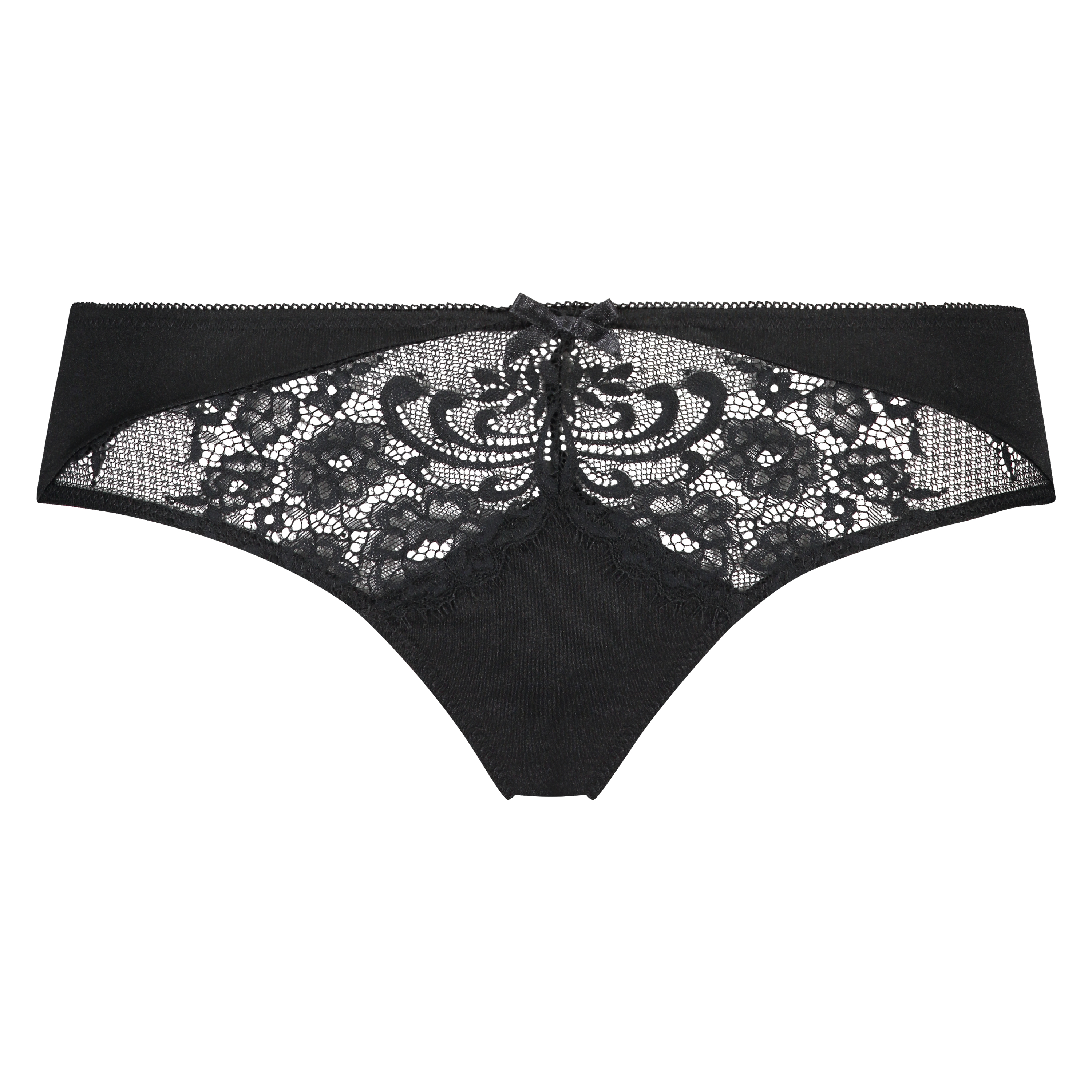 Denne brasilianske trusse er lavet af et mix af blonder og mikromateriale. Bagsiden er helt af blonder. Sløjfen foran giver det finishing touch!