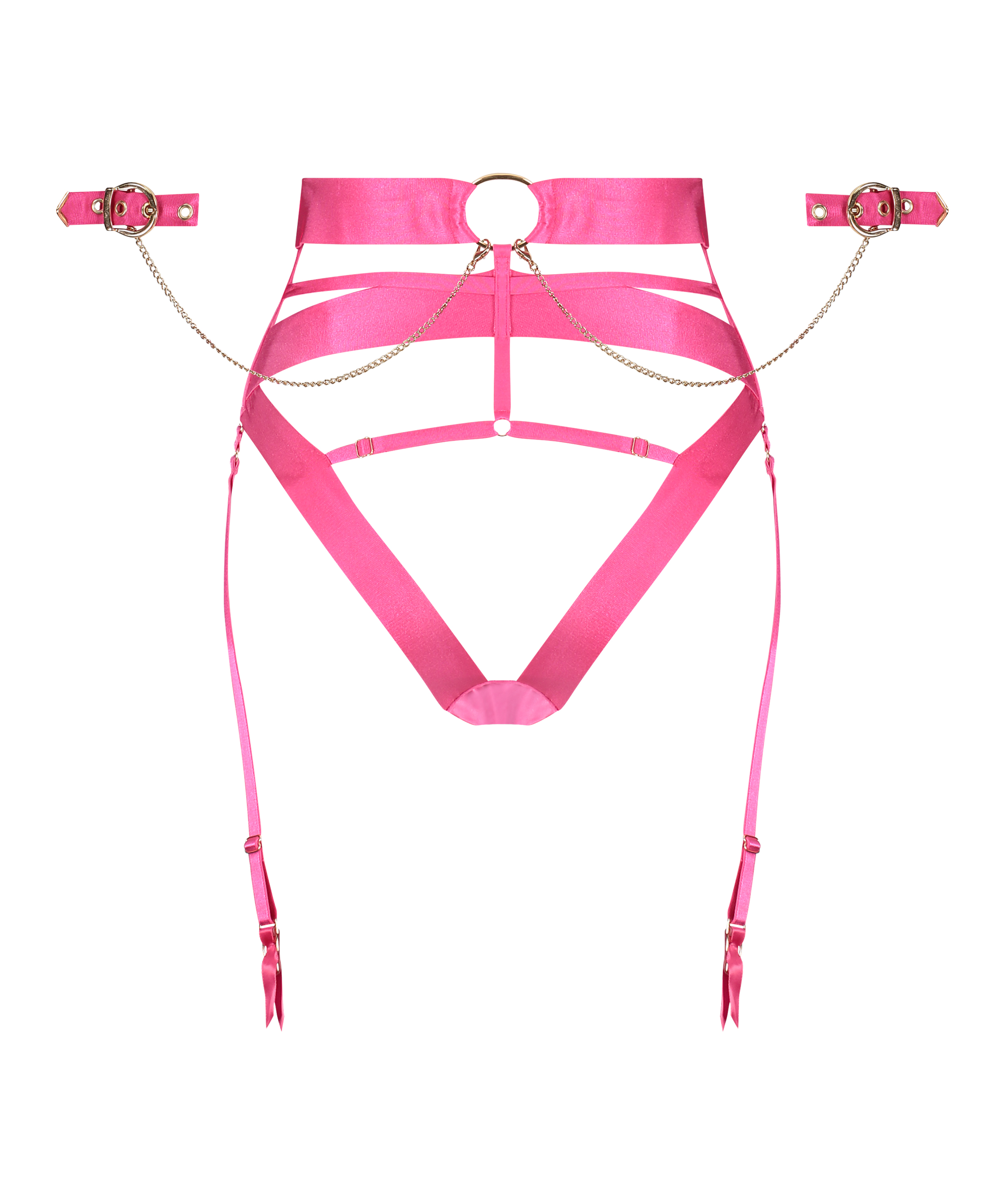 Føl dig sexet i denne dampende brasilianske! Med sexede blondedetaljer foran og åben ryg. Der er mange stroppede detaljer for et spændende look. Glem ikke de aftagelige håndjern med stropper, som er lavet for at tilføje et ekstra niveau af krydrethed. Find den matchende bralette for at fuldende sættet.