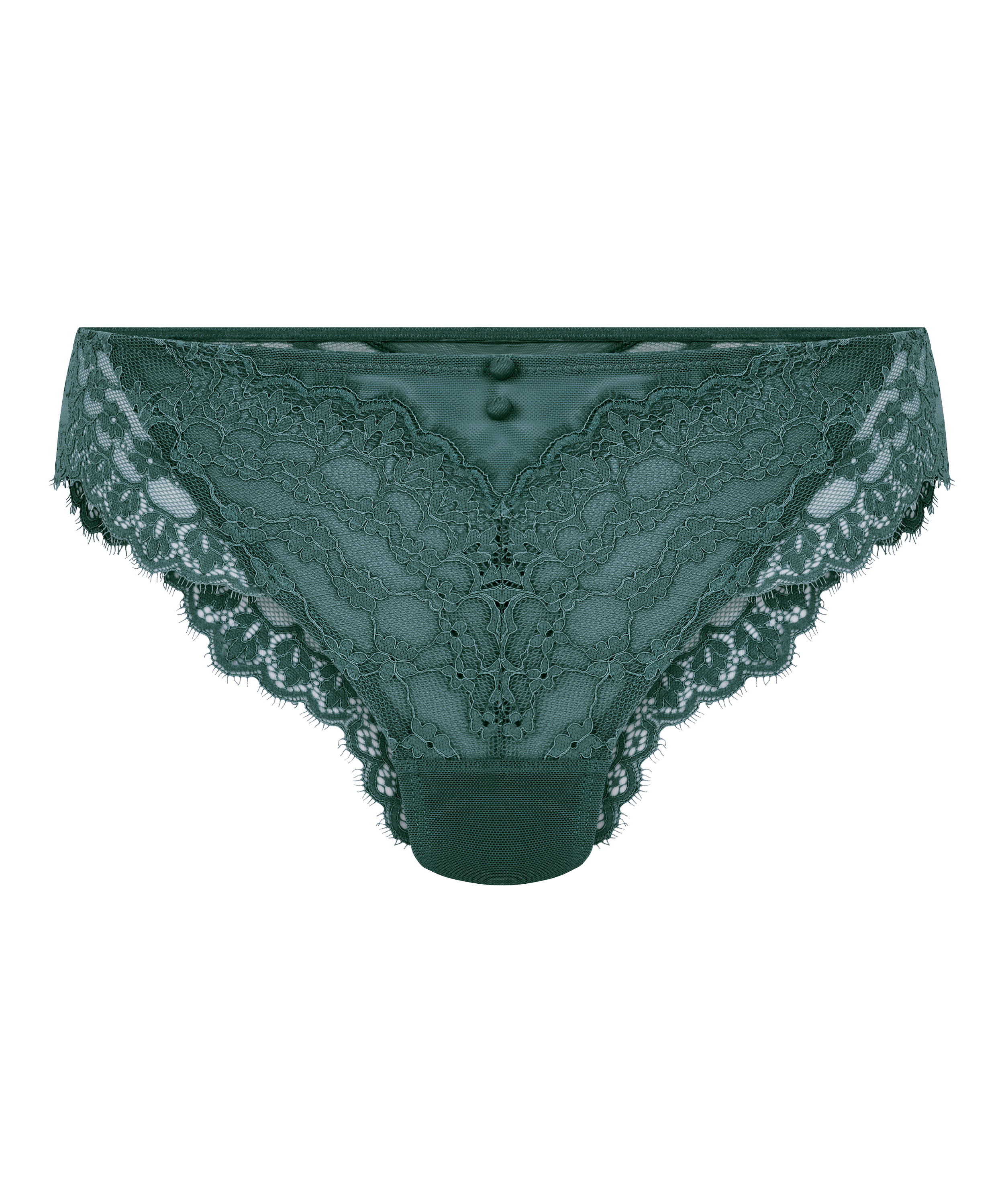 Denne brasilianske trusse er super sød! Den indeholder en masse blonder og også mesh bagpå. Kombinér med passende tilbehør for et komplet look!