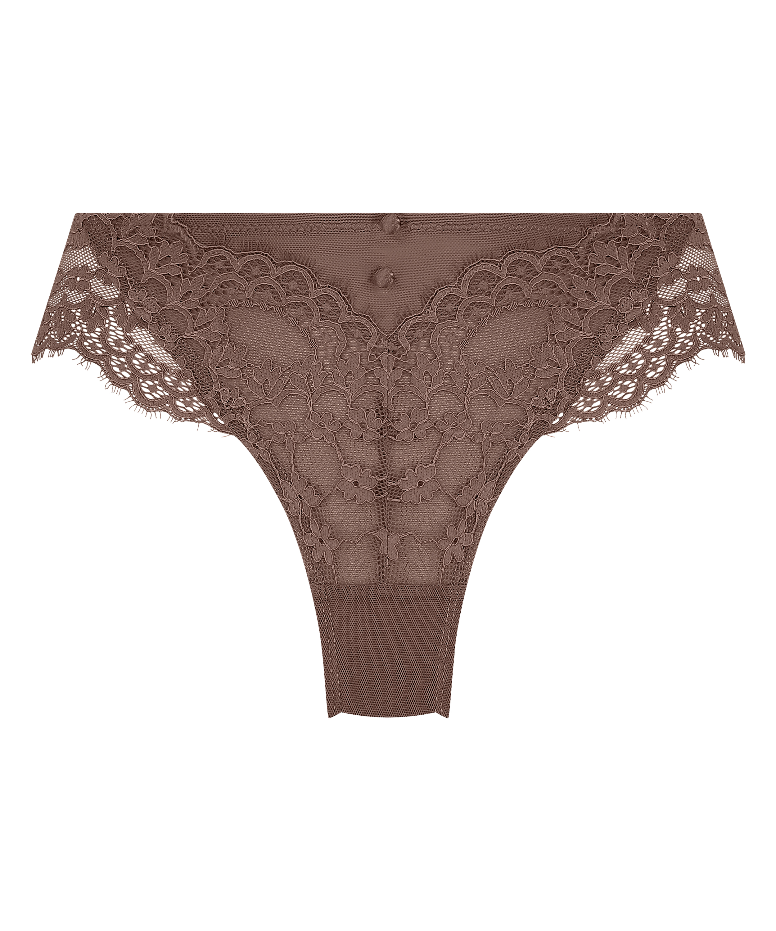 Denne brasilianske trusse er super sød! Den indeholder en masse blonder og også mesh bagpå. Kombinér med passende tilbehør for et komplet look!