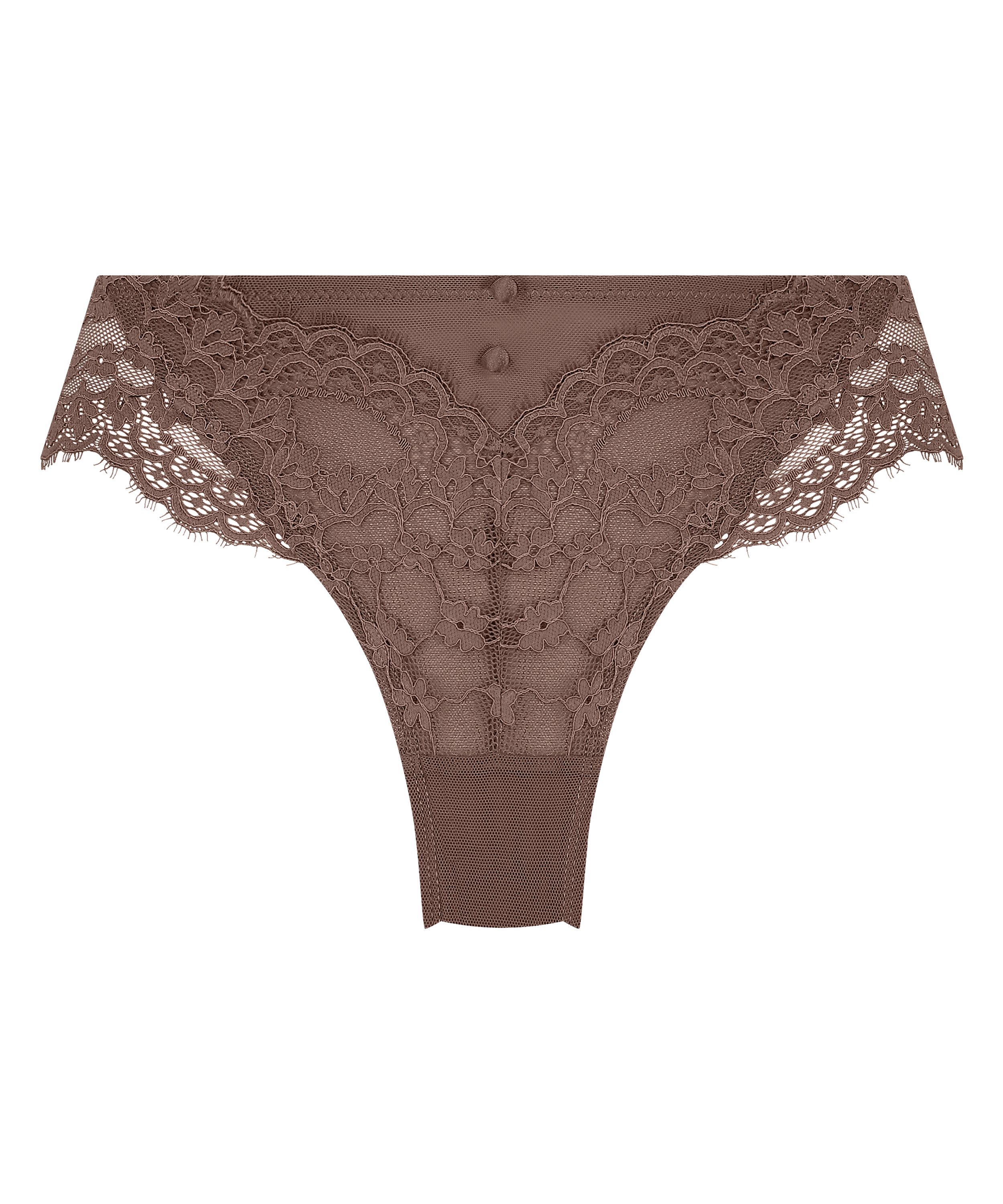 Denne brasilianske trusse er super sød! Den indeholder en masse blonder og også mesh bagpå. Kombinér med passende tilbehør for et komplet look!