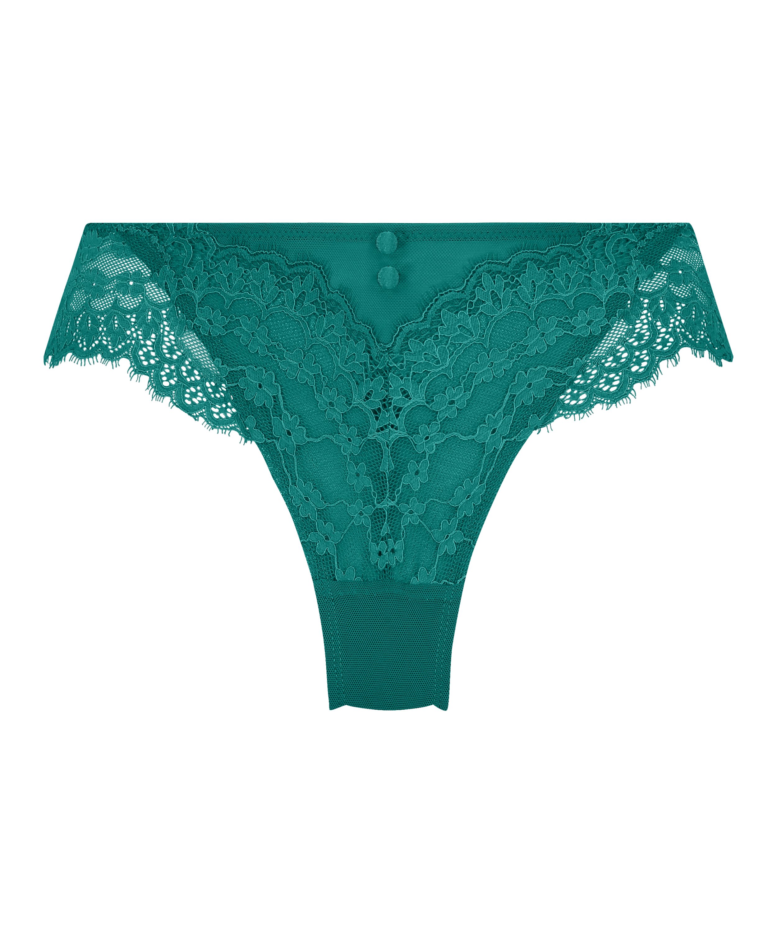 Denne brasilianske trusse er super sød! Den indeholder en masse blonder og også mesh bagpå. Kombinér med passende tilbehør for et komplet look!