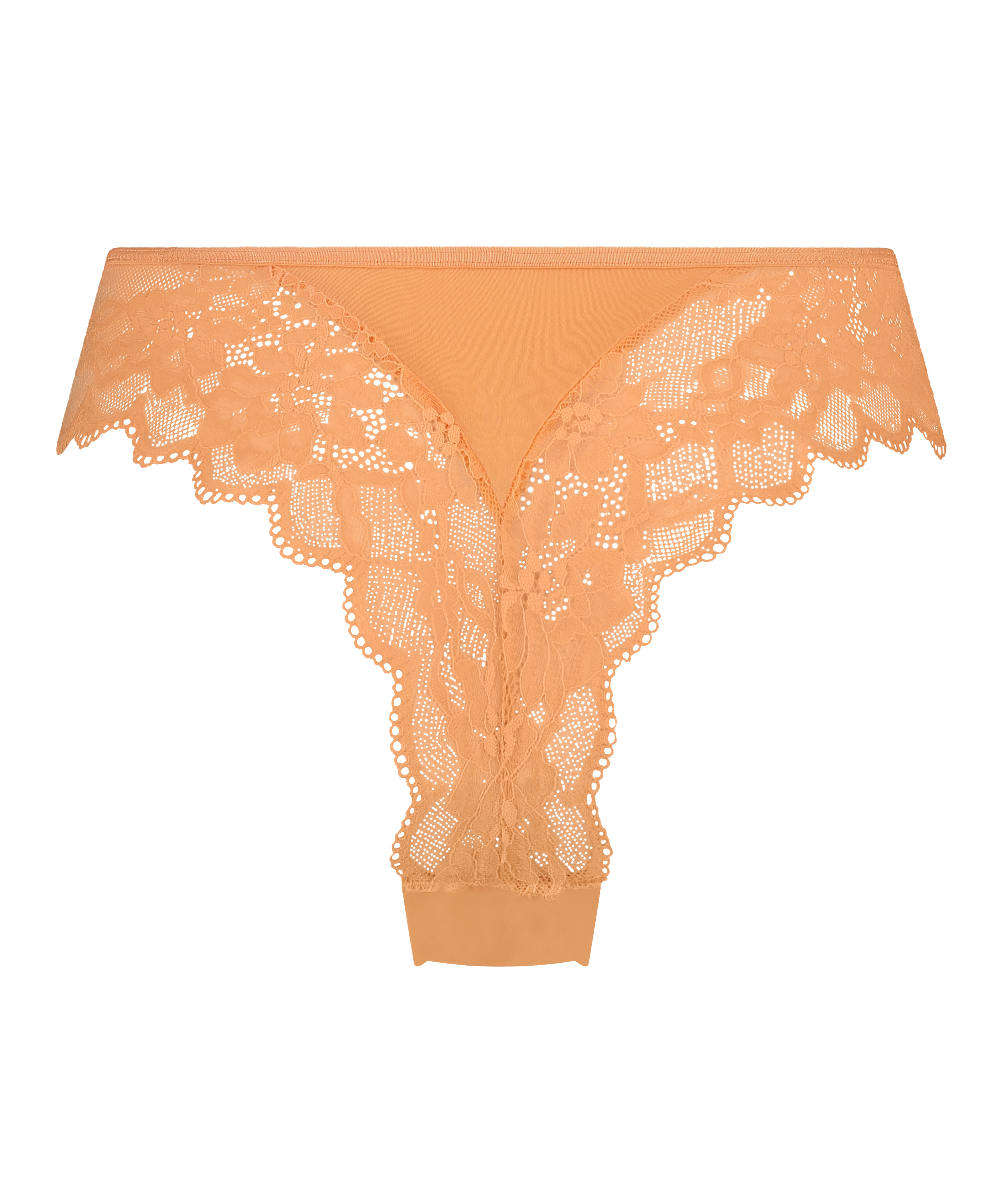 Gå ikke glip af denne behagelige brasilianske trusse! Med blonde overalt og fuldendt med en sød sløjfe. Match med din yndlings-bh!
